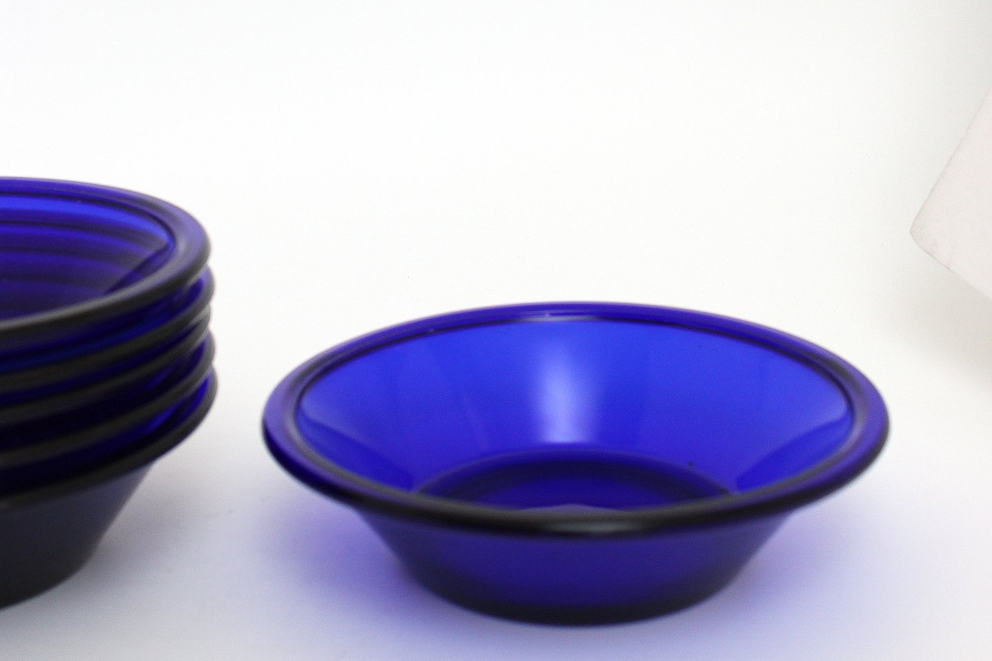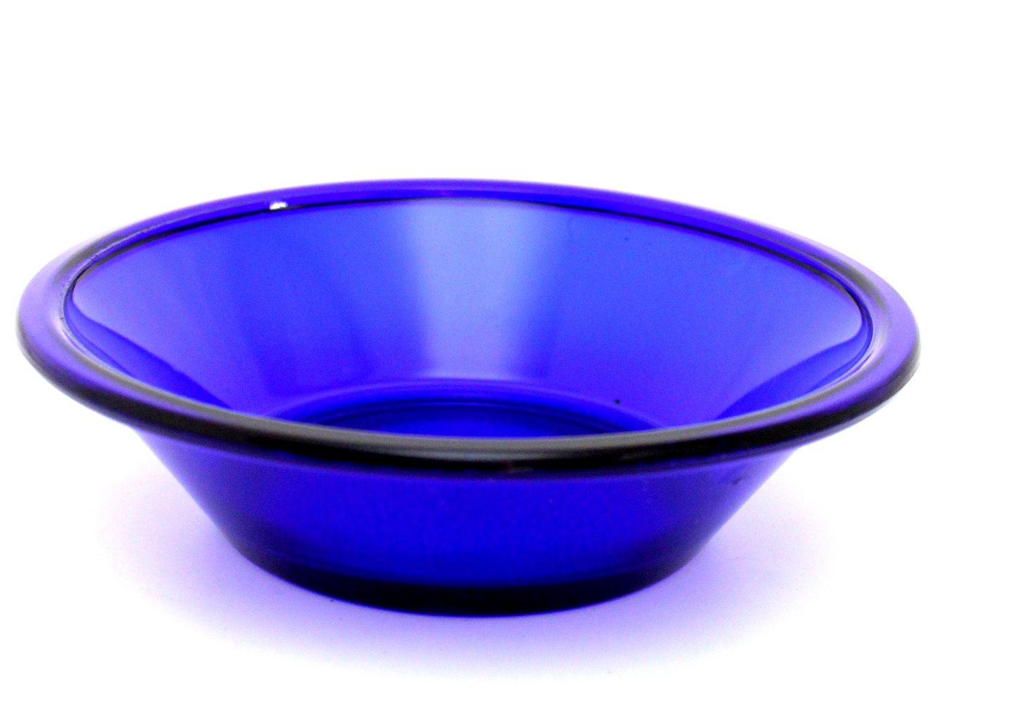 Holmegaard, Else, Tykmælksskål i presset kobolt blå glas. Designet i 1938 og produceret frem til slut 1970'erne i varierende størrelser, men samme form og blev kaldt ymerskål