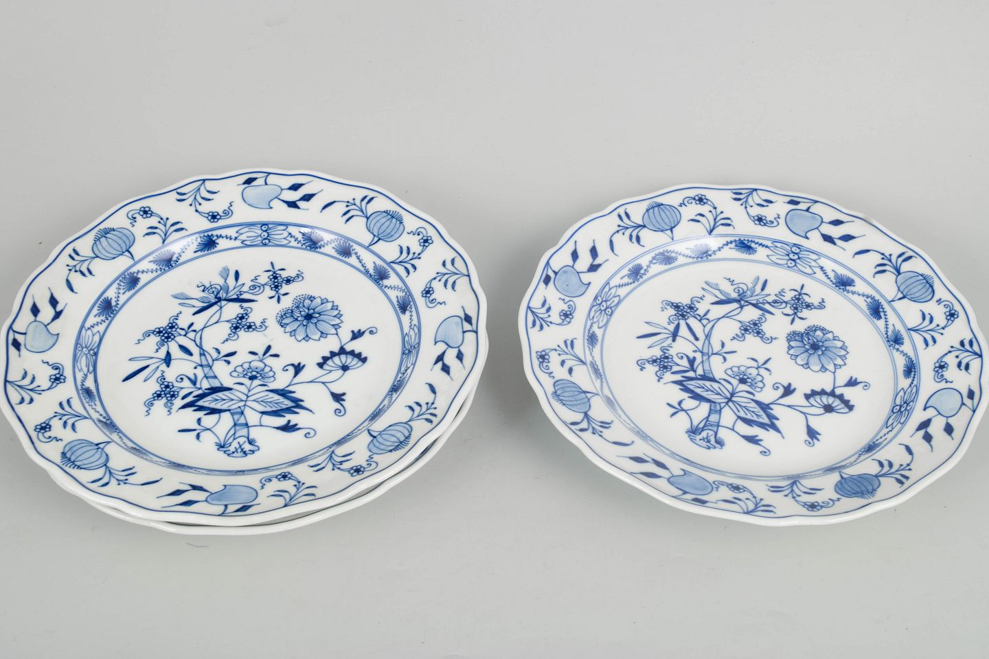 Meissen Blue Onion, set of three dinner plates.