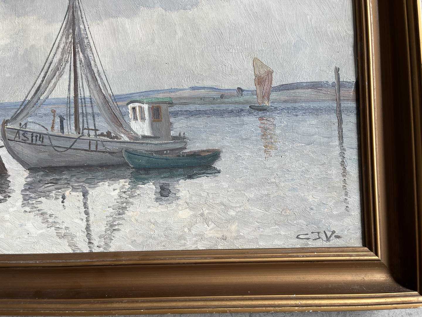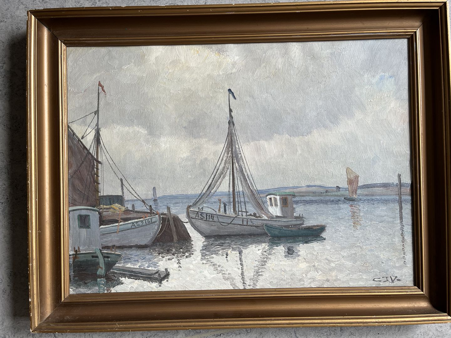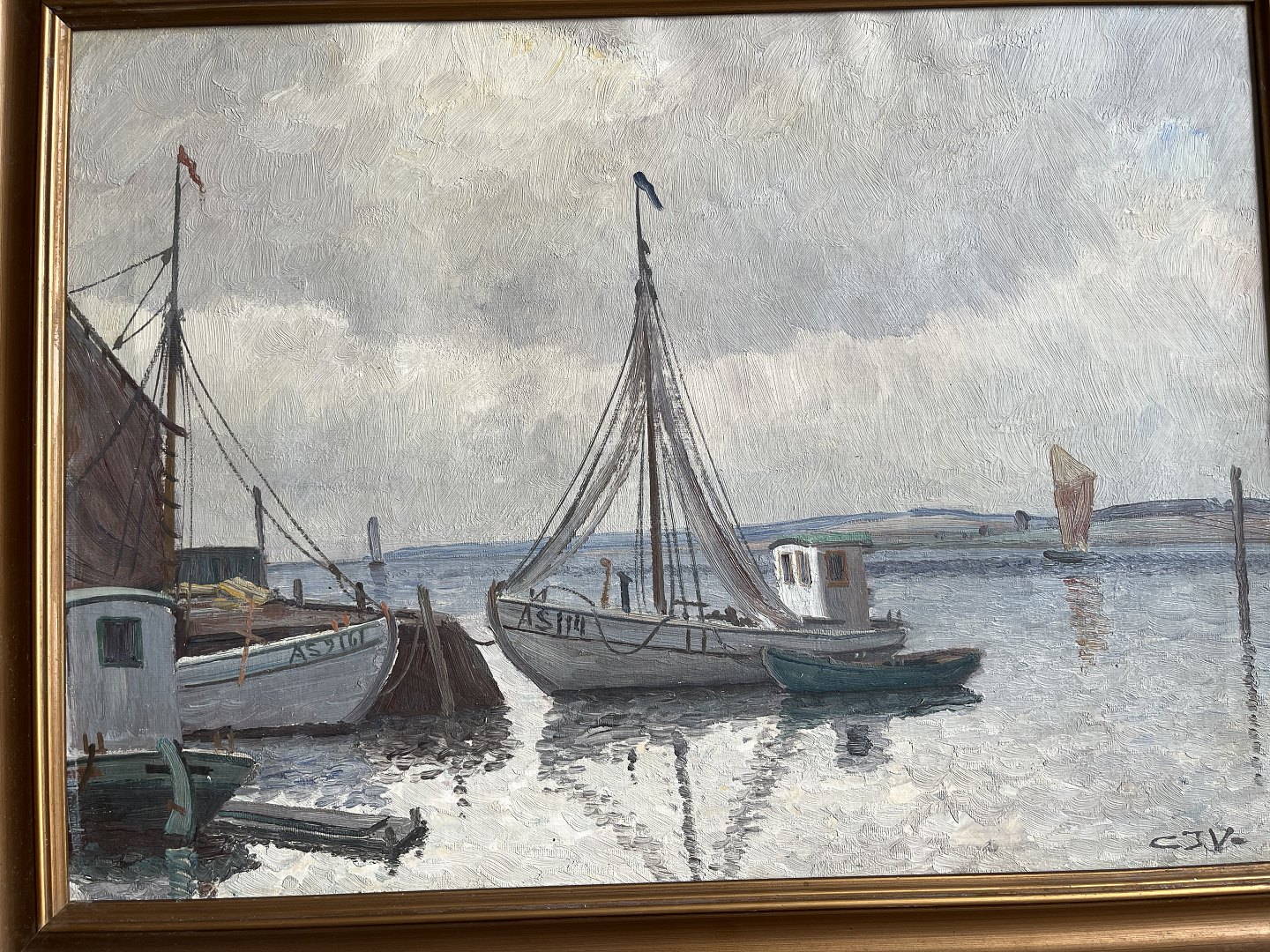 Maleri af Chr. Jensen Virklund - Havneparti, Silkeborg.