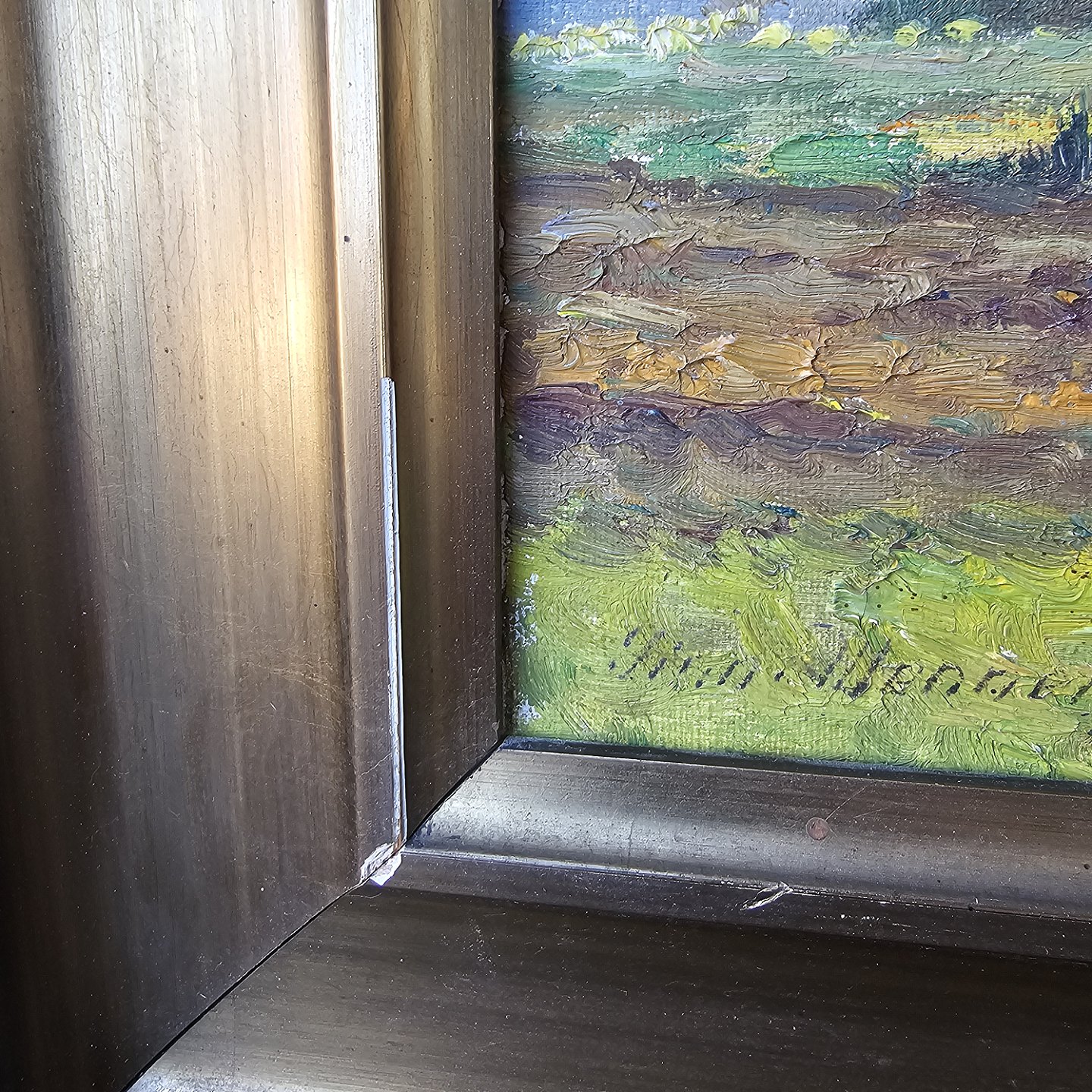Fremstår med brugsspor på rammen og selve maleriet sidder løst i rammen