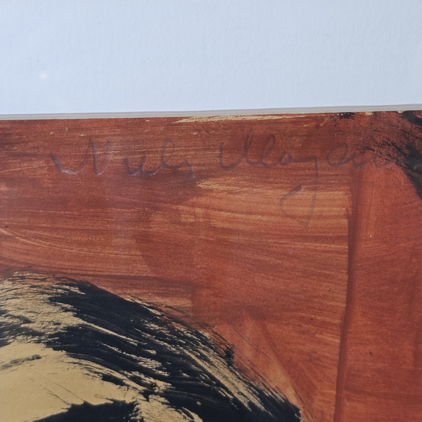 Oliemaleri på papir, kvindeportræt monteret i metalramme