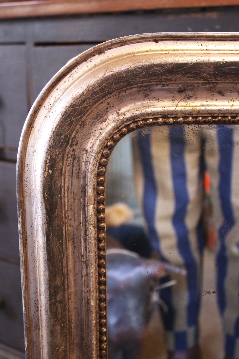 Fransk 1800 tals Louis Philippe sølv kamin spejl med fin dekoreret ramme med perlekant.