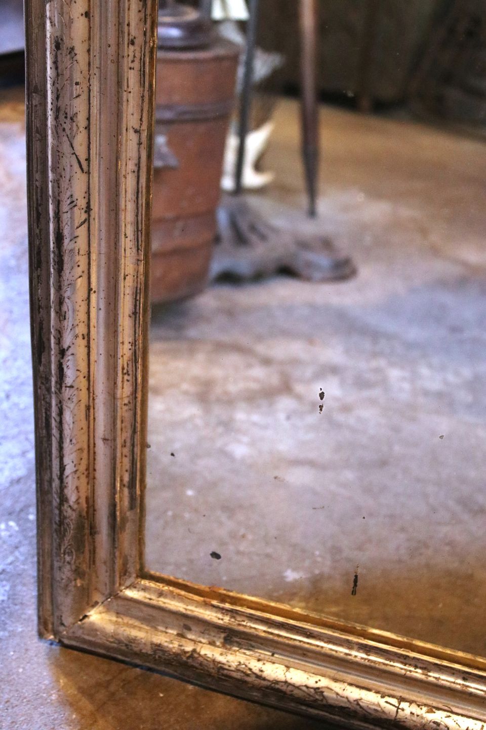 med fin dekoreret ramme og originalt gammelt spejlglas med en super fin patina.