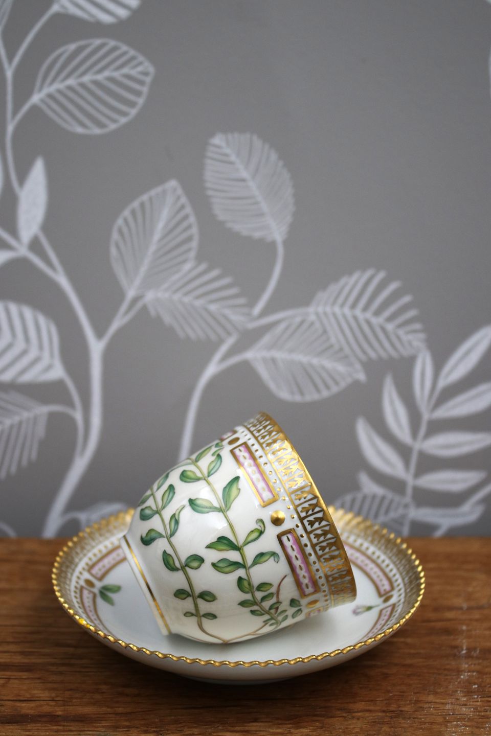 Mocca kop uden hank med underkop i Flora Danica-stel produceret