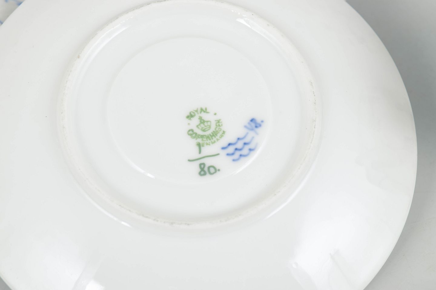 Royal Copenhagen Musselmalet Riflet, sæt af tre kaffekopper med underkopper.