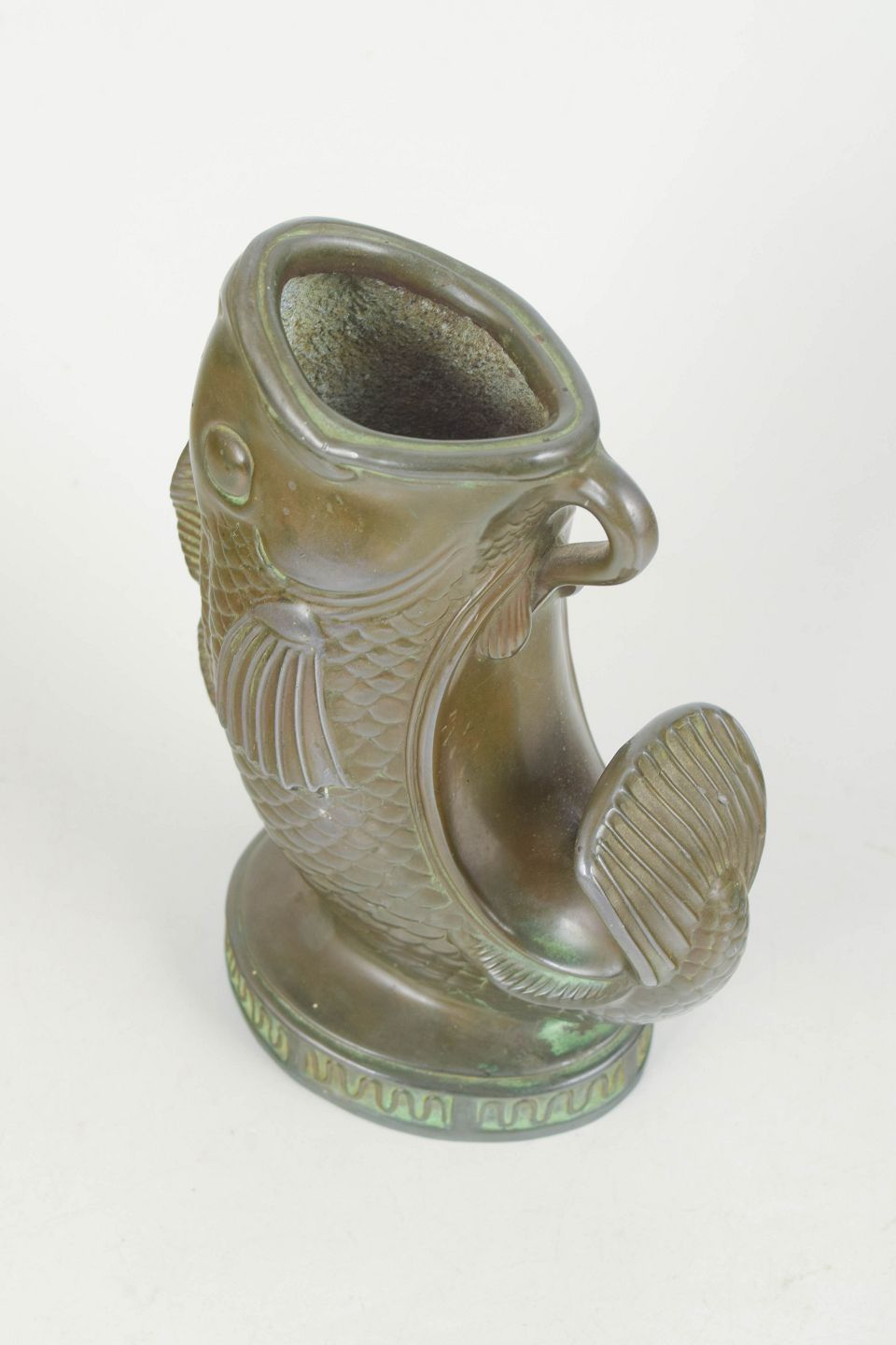 Skulpturel fiskefigur i diskometal udført i et markant og dekorativt art deco formsprog. Model 2193.