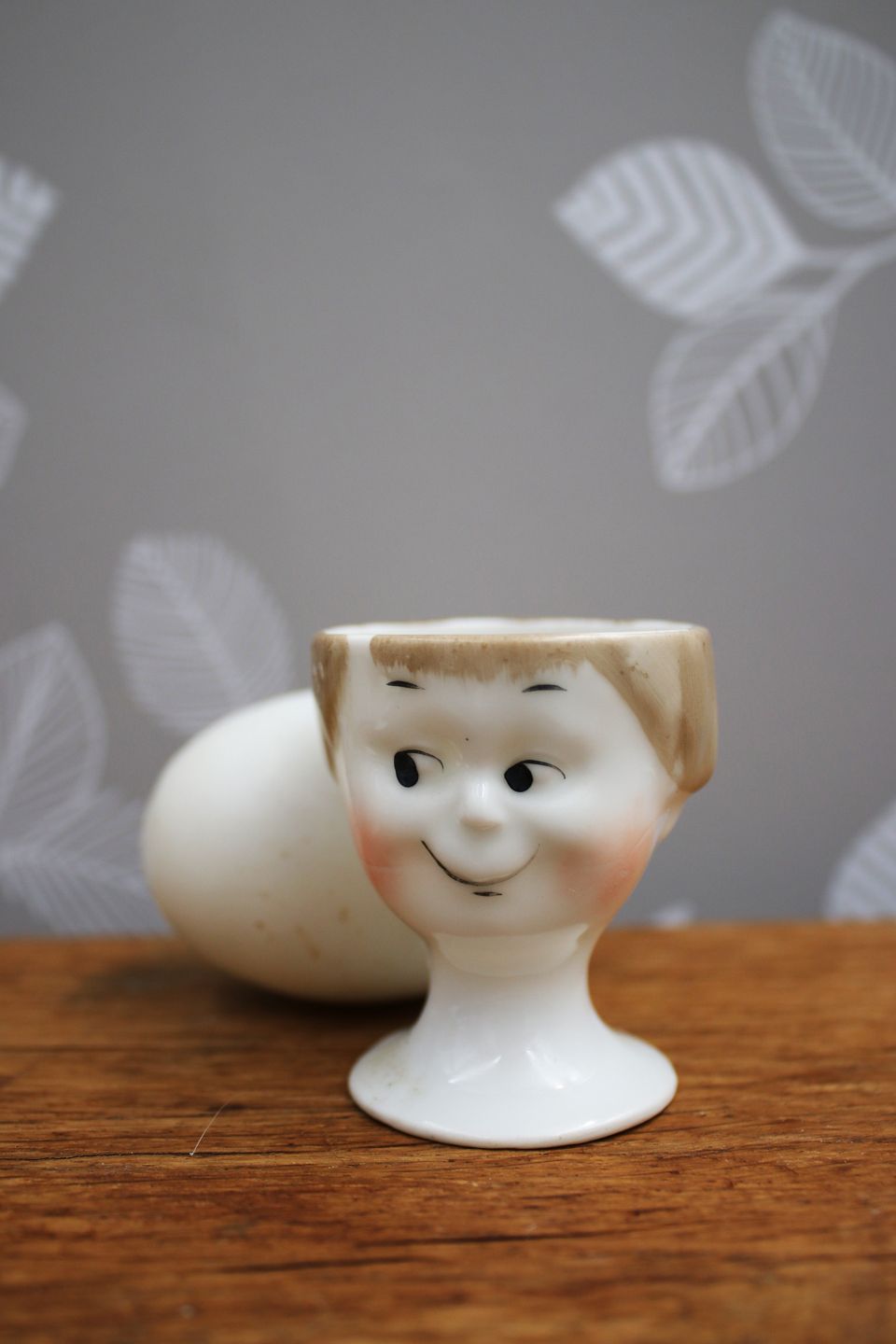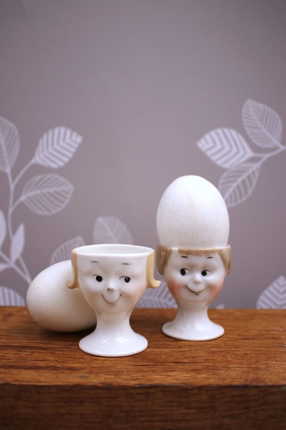 Old egg cups from the 30s in porcelain with painted funny faces.