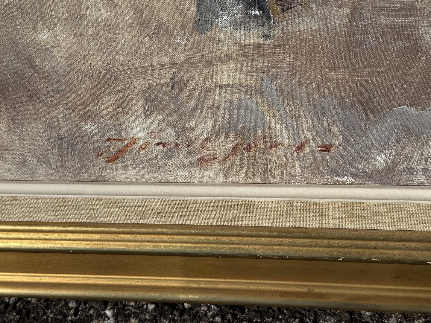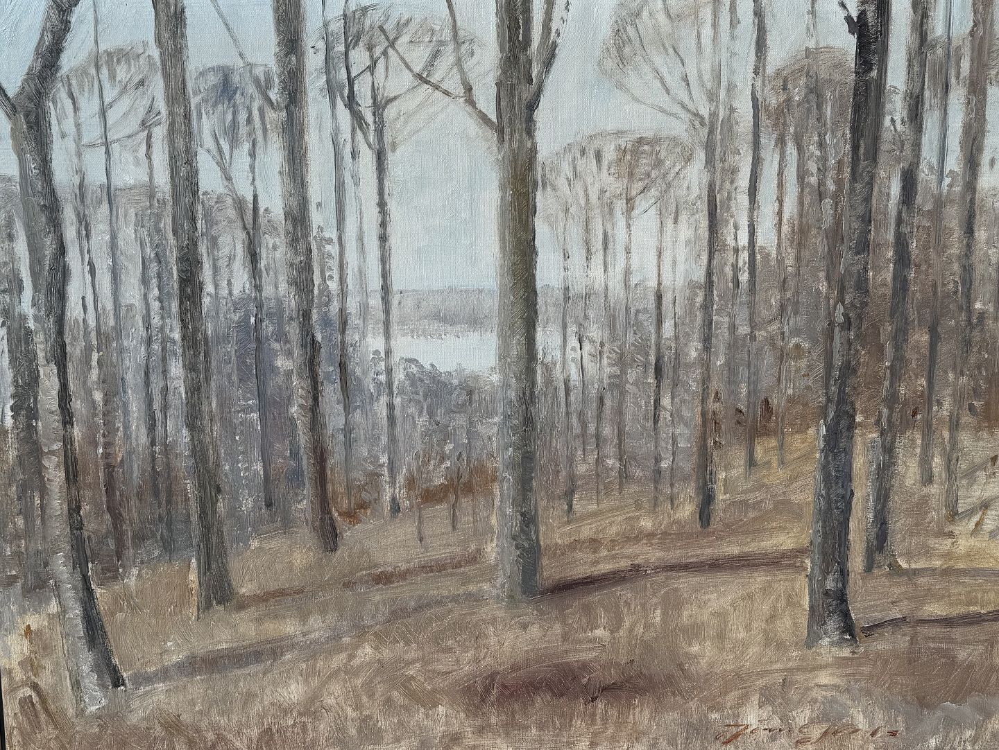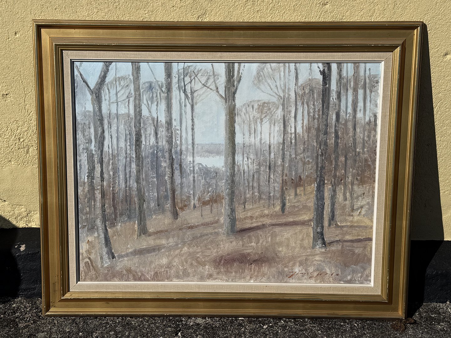 Jørn Glob (1913-1988), Oliemaleri på lærred , Træer ved en sø, Mål med ramme 98x79 *Fin stand*