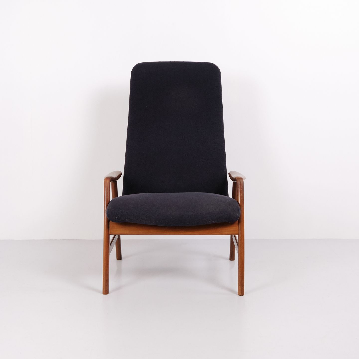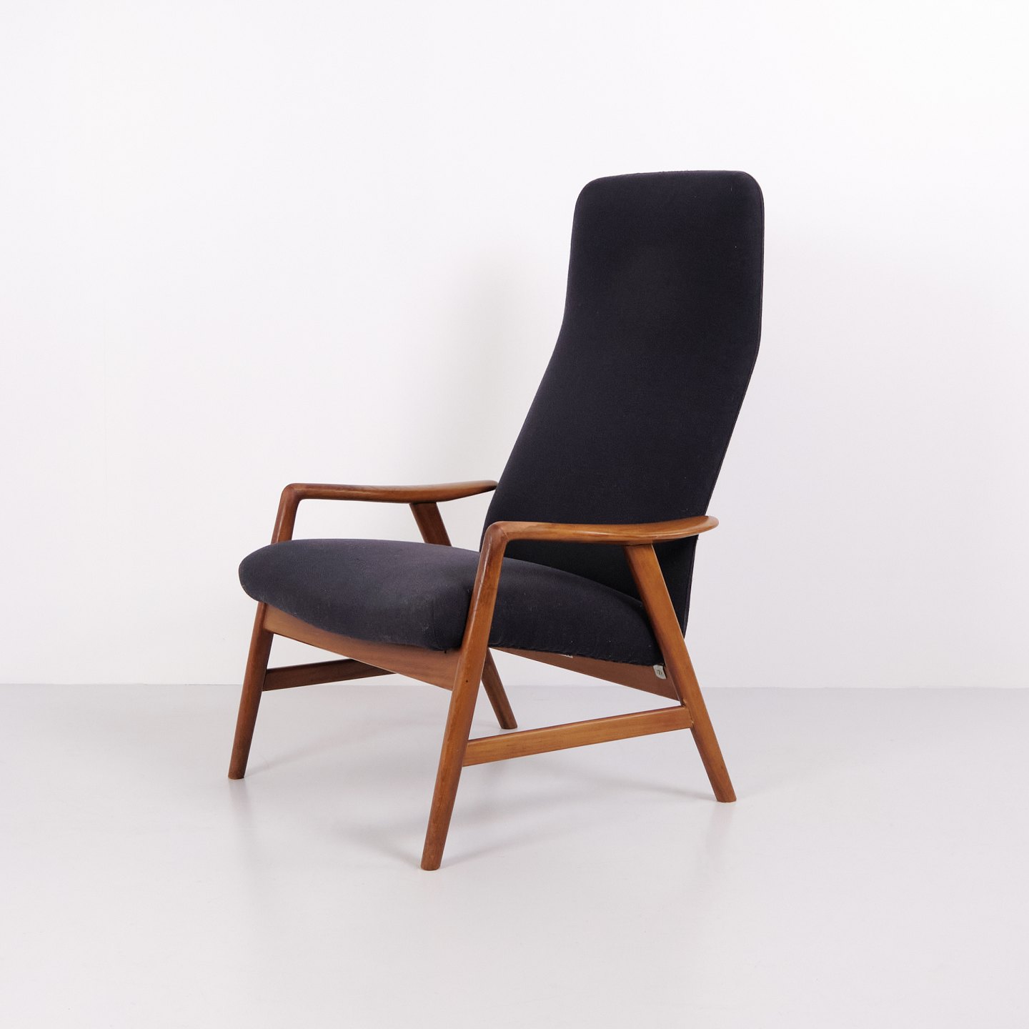 Contour Set 327 lænestol designet af Alf Svensson for Ljungs Industrier AB, Sverige. Stel udført i teak med original polstring. Ryggen kan justeres i tre forskellige positioner. Original label er bevaret under sædet. Alf Svensson var en svensk møbeldesigner aktiv fra 1950’erne til 1970’erne og kendt for møbler i skandinavisk modernisme.
