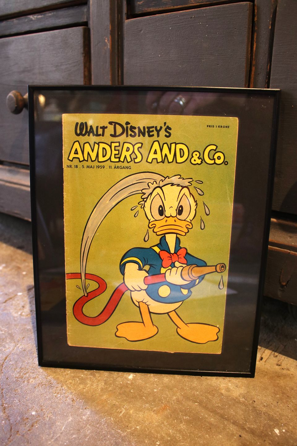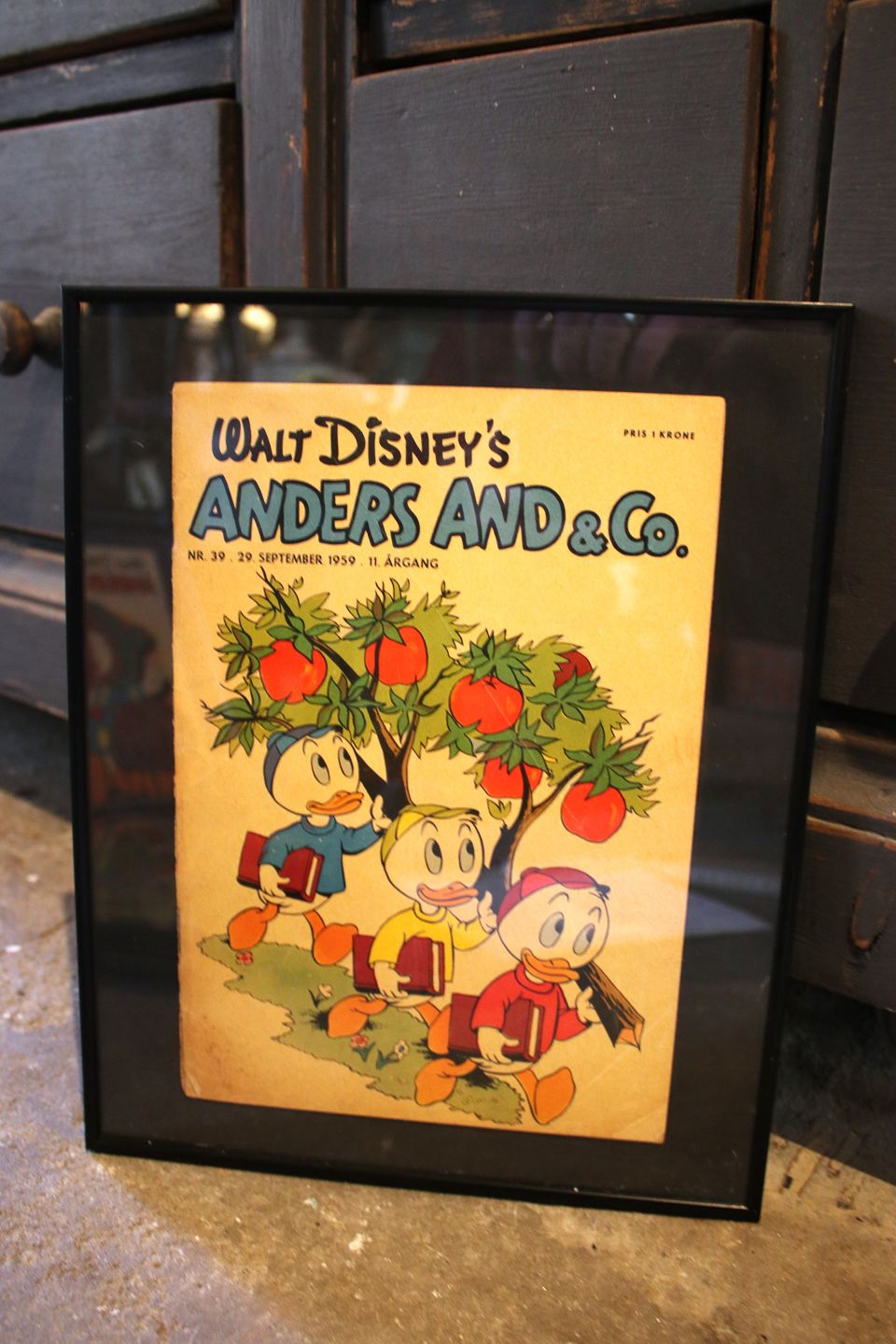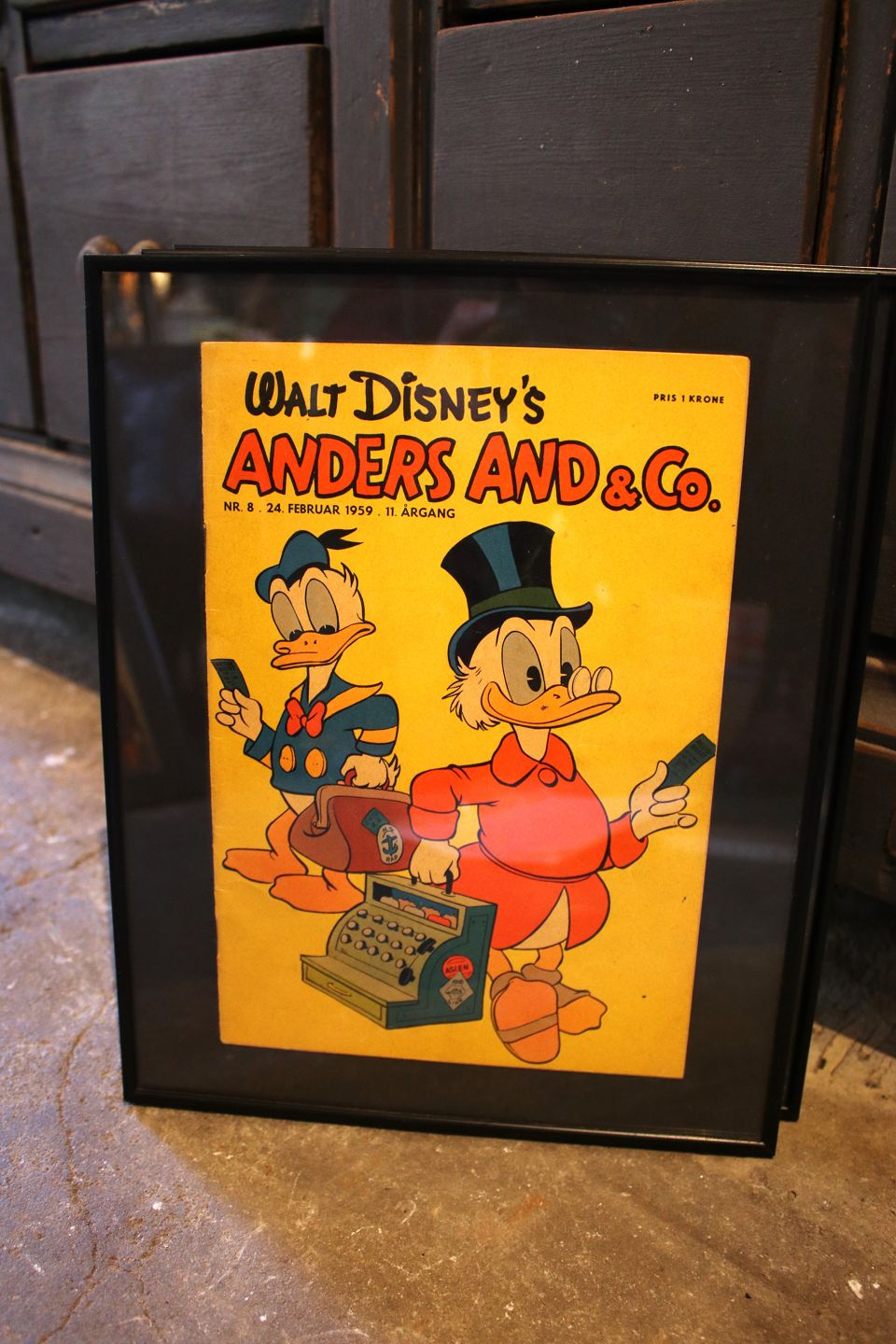 Dekorative , gamle Walt Disney Anders And blade fra årgang 1959 indrammet i sort ramme. 30x24cm...