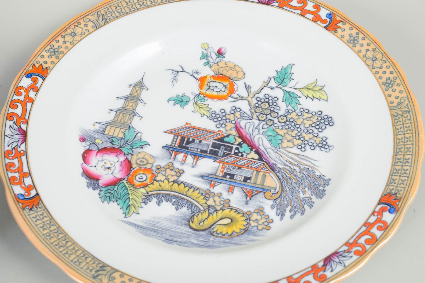 Dinner plates in faience with oriental-inspired decoration in polychrome colours and finely detailed painting in Japanese style, characteristic of Rörstrand’s japonisme production from the early 20th century.