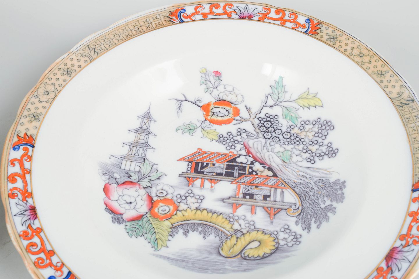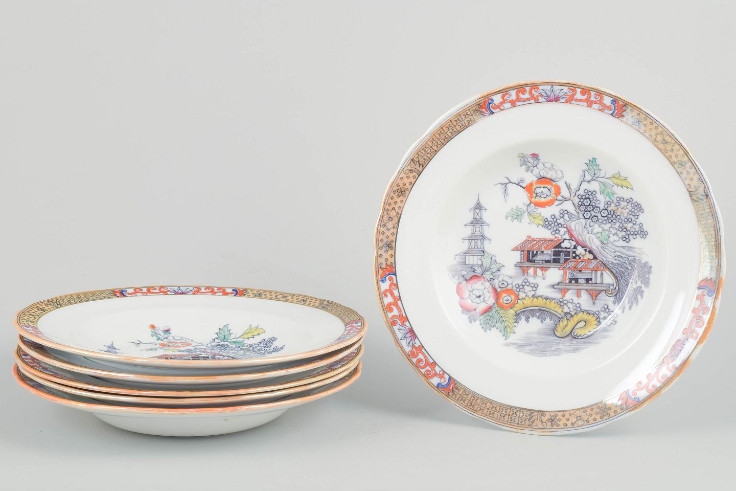 Deep plates in faience with oriental-inspired decoration in polychrome colours and finely detailed painting in Japanese style, characteristic of Rörstrand’s japonisme production from the early 20th century.