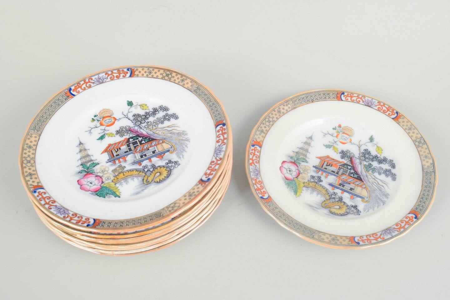 Lunch plates in faience with oriental-inspired decoration in polychrome colours and finely detailed painting in Japanese style, characteristic of Rörstrand’s japonisme production from the early 20th century.