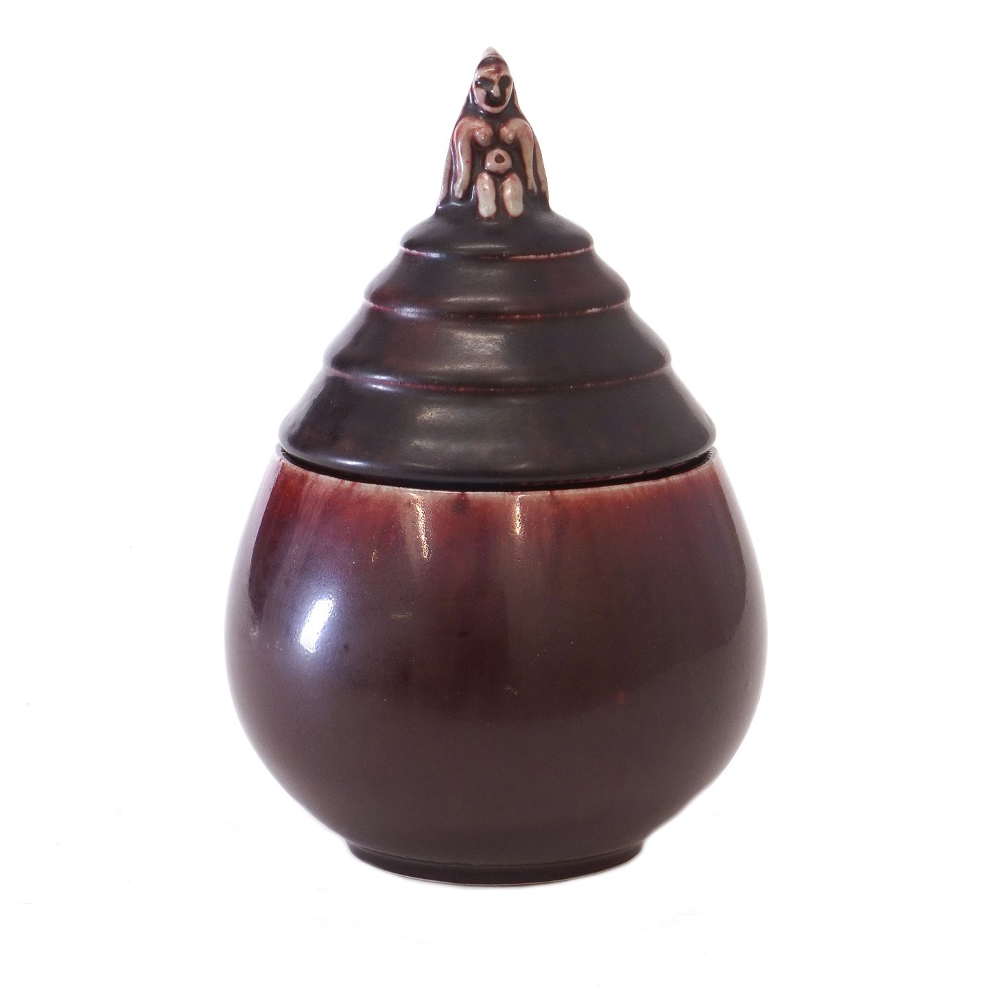 Bode Willumsen lågkrukke i stentøj med lågknop i form af kvindelig figur