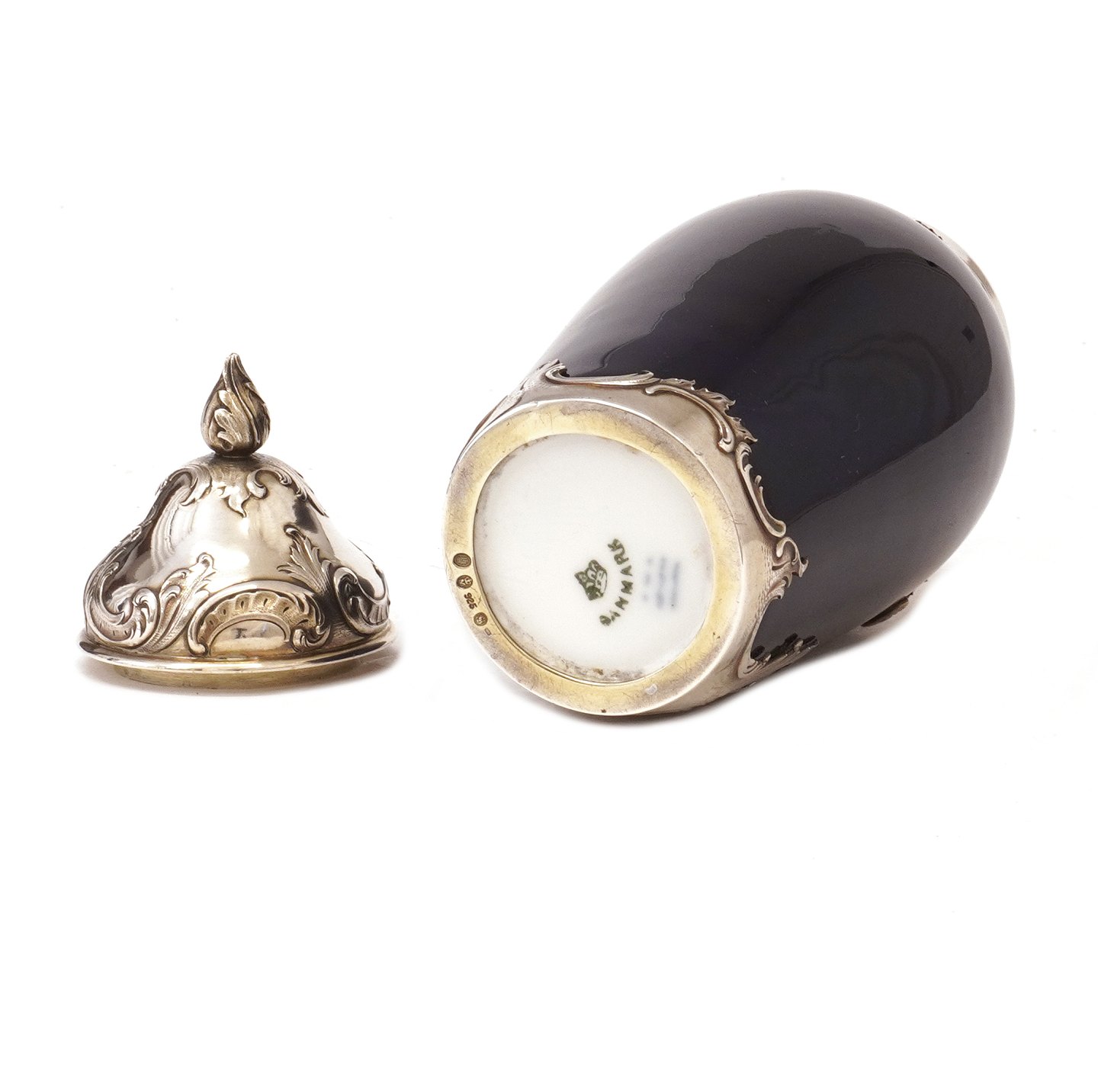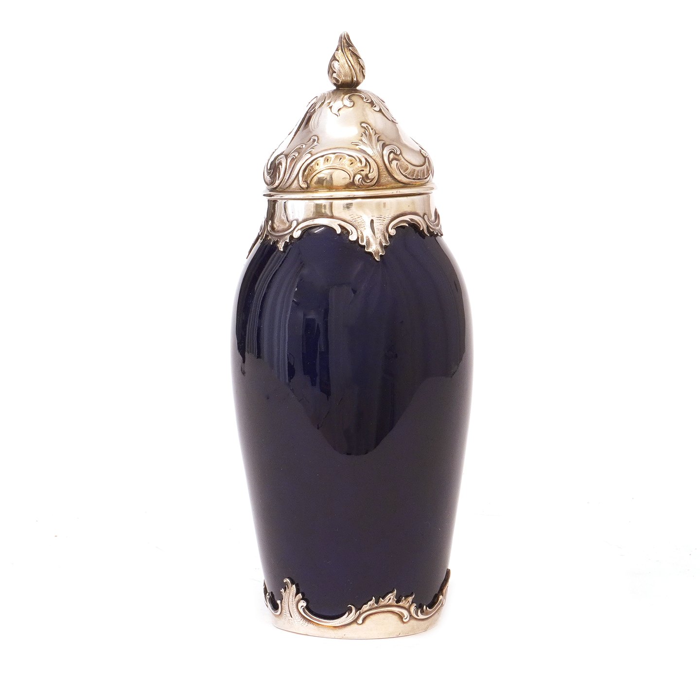 Tidlig Royal Copenhagen dybblå porcelænsvase med sølvmontering af A. Michelsen dateret 1903