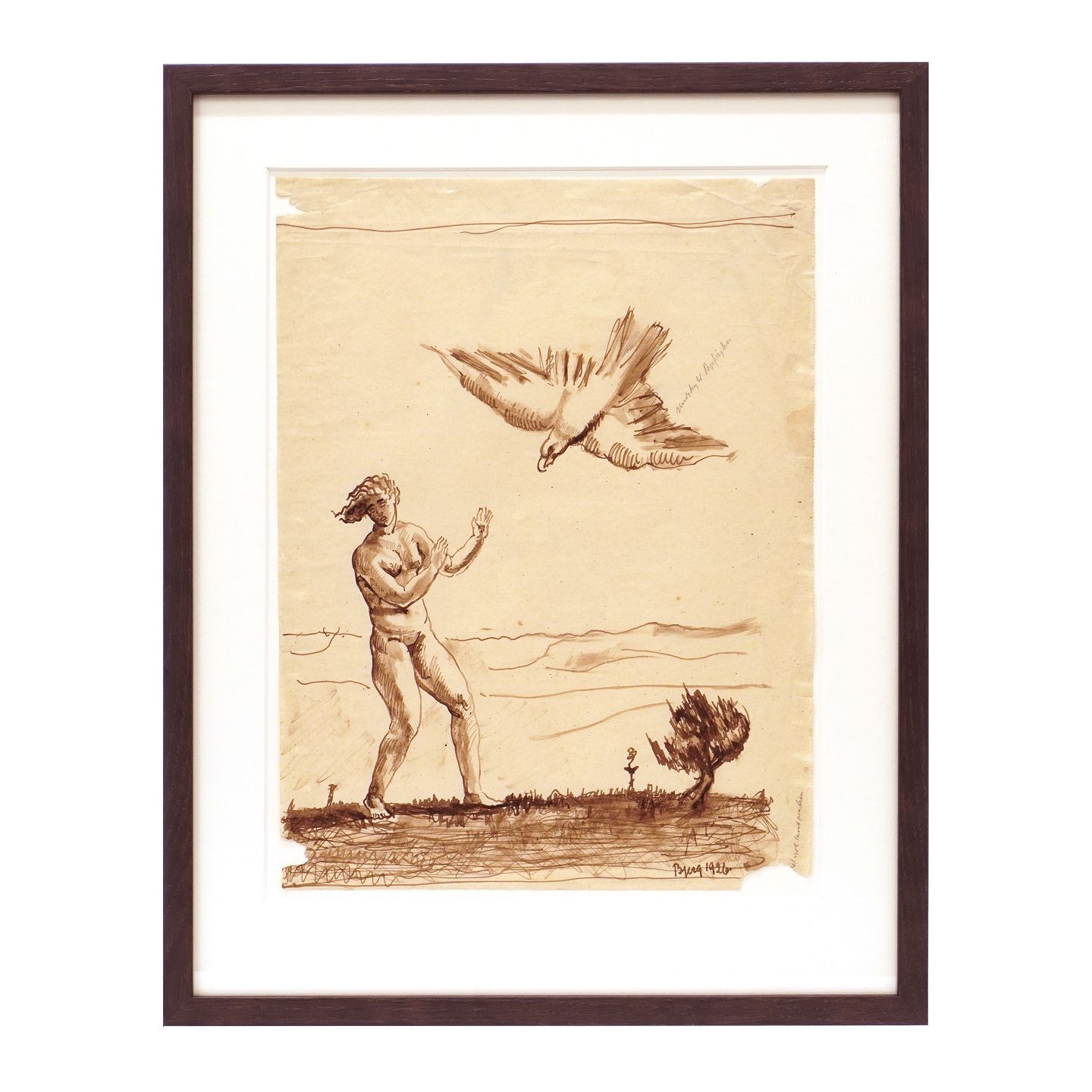 Johannes Bjerg, 1886-1955, tegning, blyant og tusch. Signeret "Bjerg 1926". Lysmål: 36x27cm. Med ramme: 47x38cm |