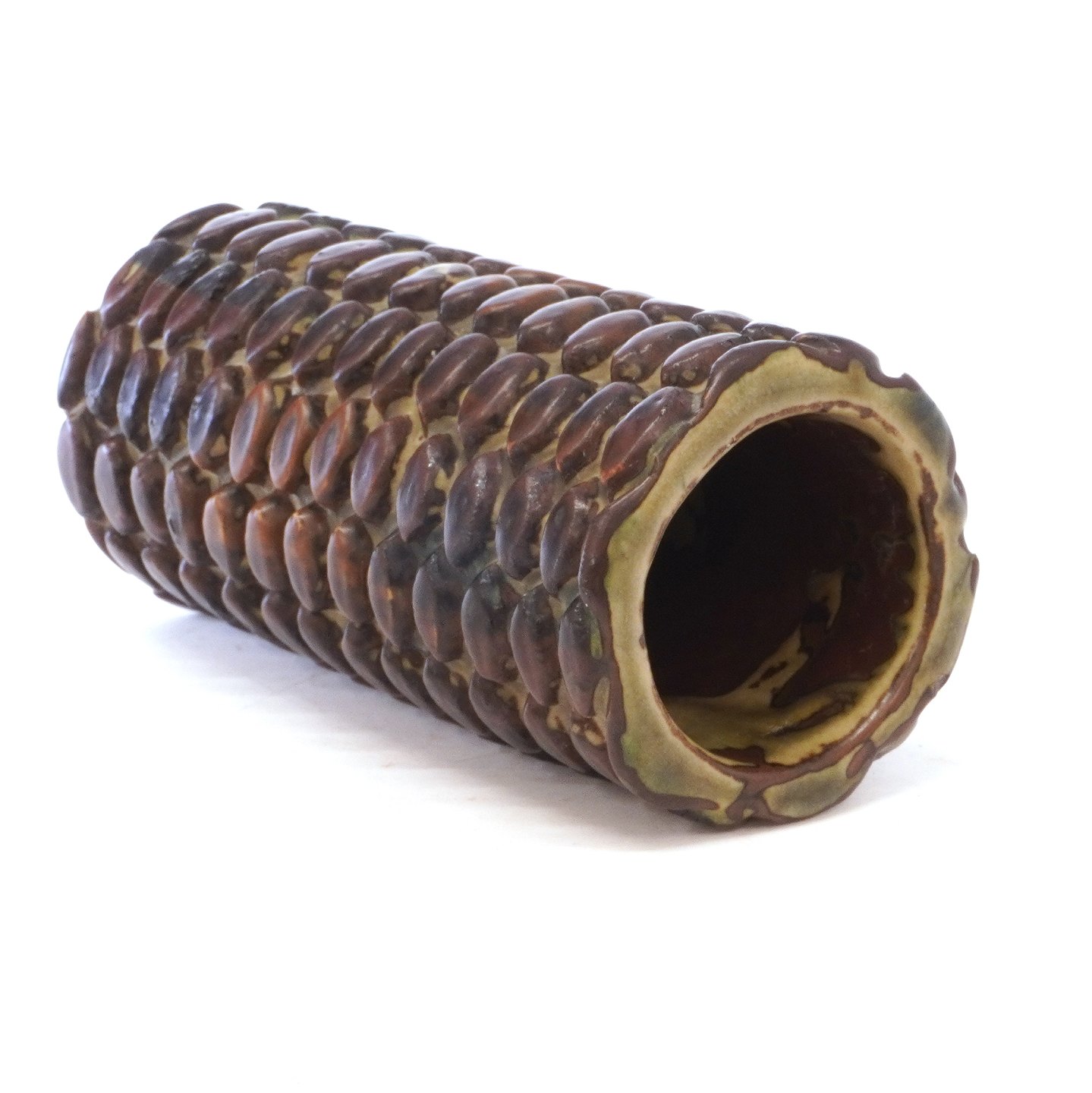 Axel Salto, 1889-1961, tidlig cylindrisk vase udført i stentøj i knoppet stil med usædvanligt dybe rhombeformede knopper