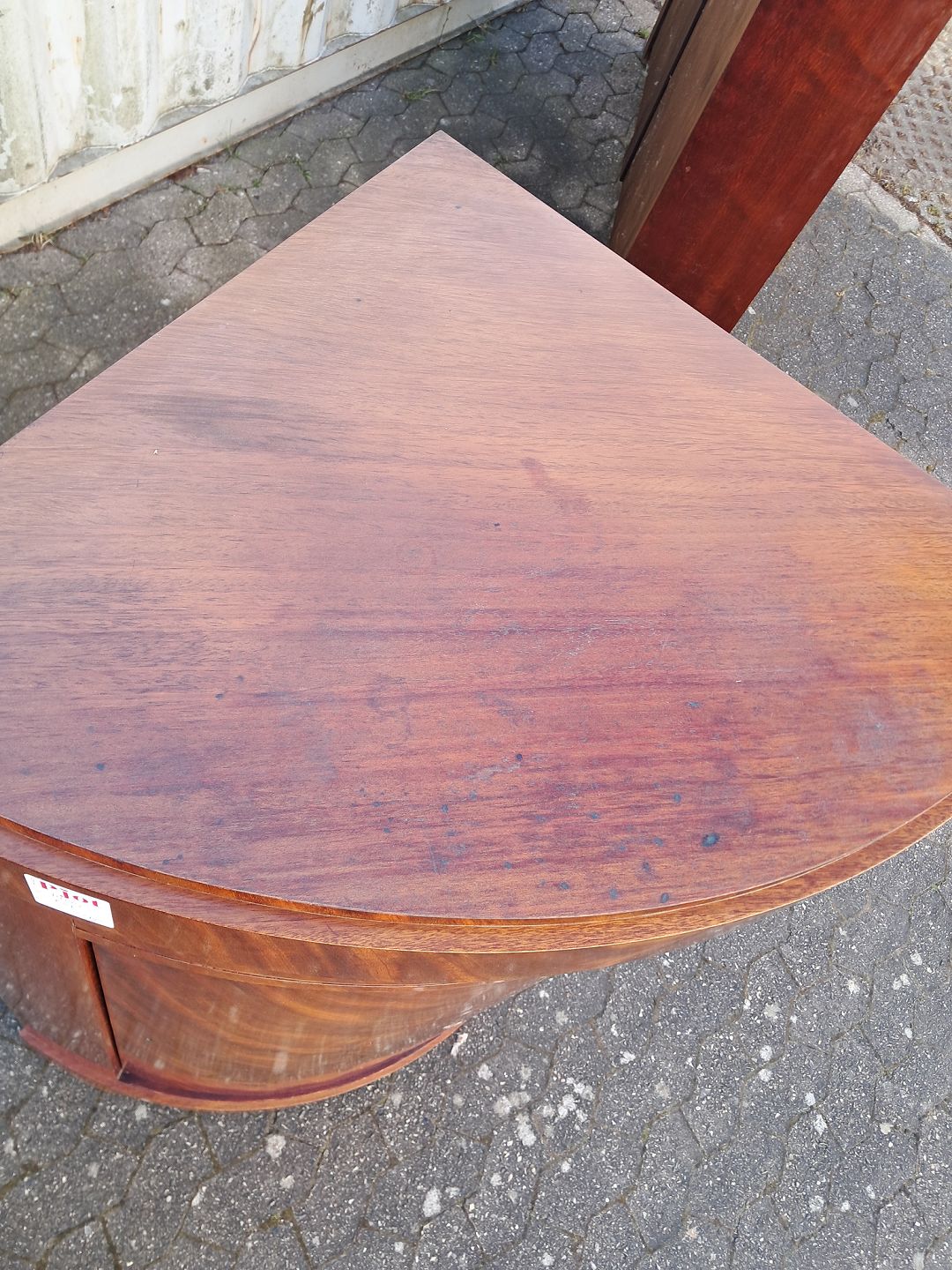 Hjørneskab i fineret mahogni, fra 1910erne.