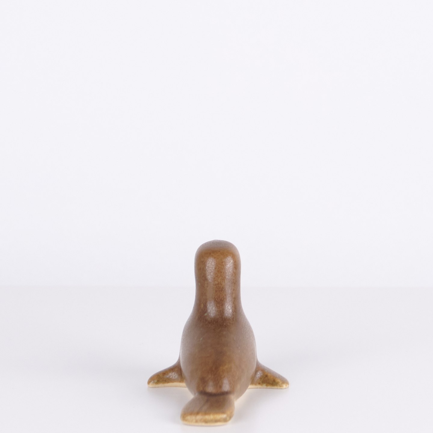 Sælfigur af Knud Basse udført i glaseret keramik. Figuren er fremstillet i Danmark i 1960’erne. Knud Basse er kendt for keramiske dyrefigurer med naturmotiver produceret i perioden.