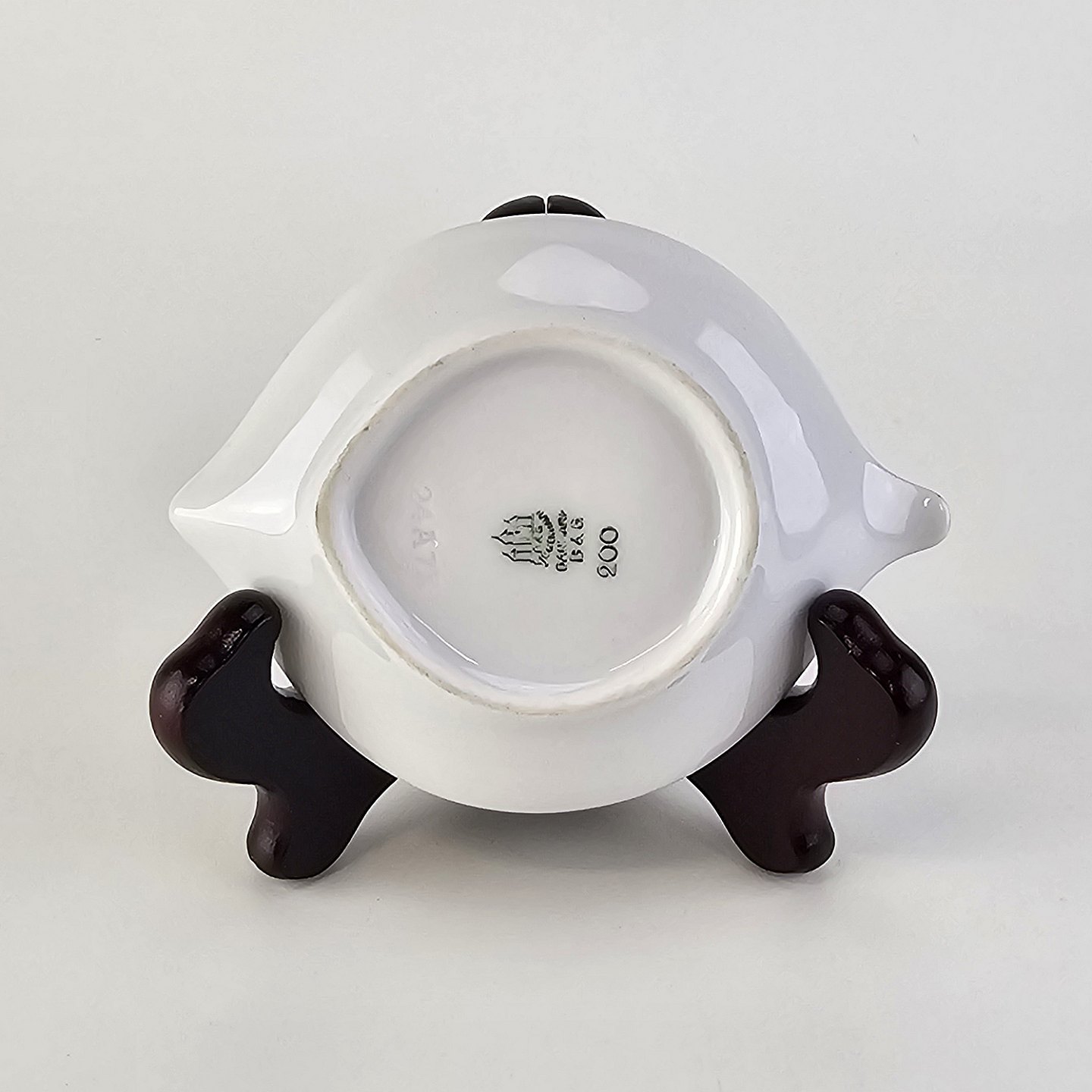 Service i glat hvidt porcelæn med mintblå dekoration og dobbelte guldkanter