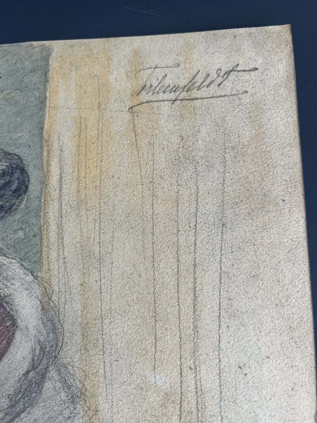 Bagpå tegning af smuk ung kvinde 1913 (bly/kul)