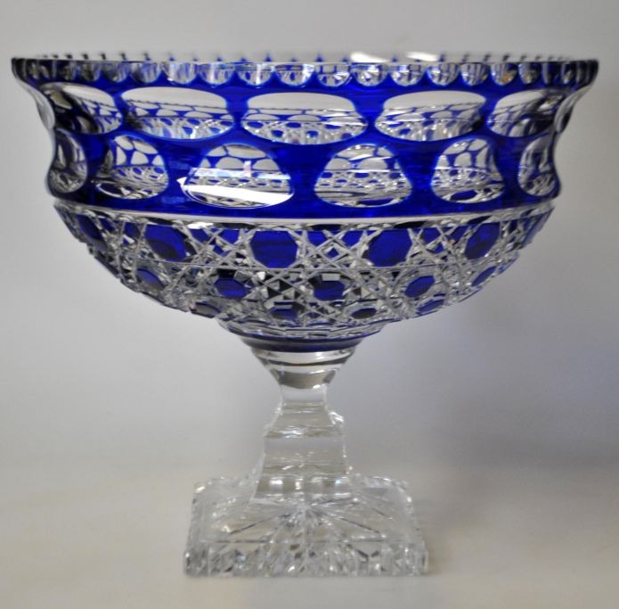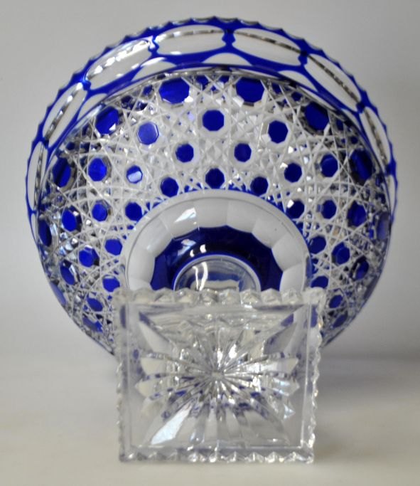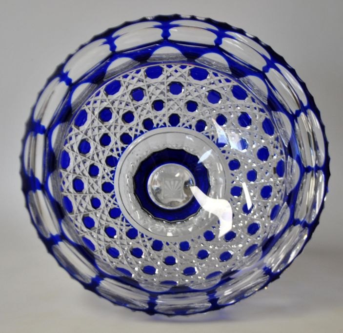Stor krystalopsats, 20. årh. Med blåt overfang. På firkantet fod. H.: 21 cm. Dia.: 24 cm.