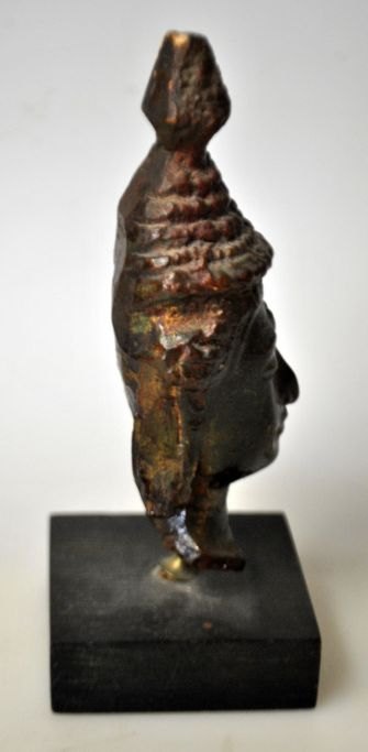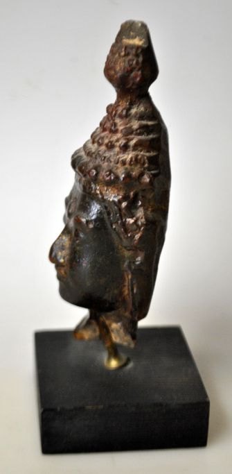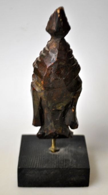 Antik Buddha i udskåret sten, 19. årh. På lille træfod. H.: 13 cm. Højde med fod: 15 cm.