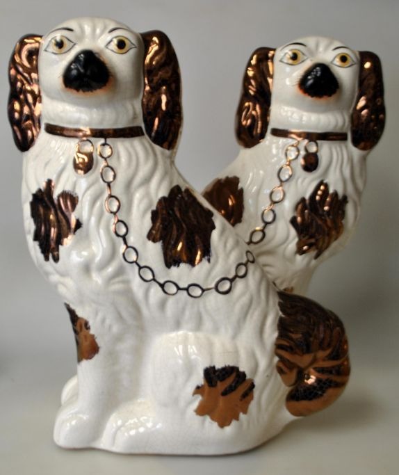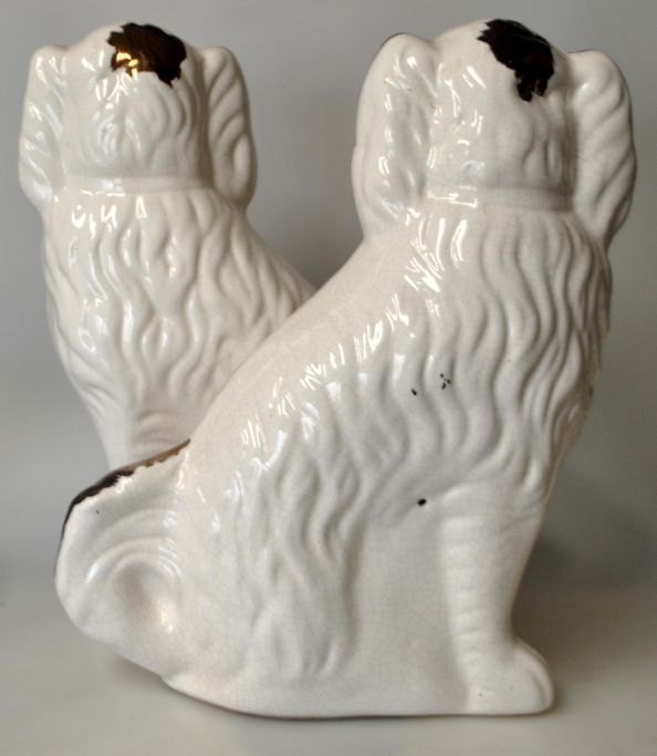 Par Staffordshire hunde, 19. årh. England. Med håndbemalinger. H.: 30 cm.