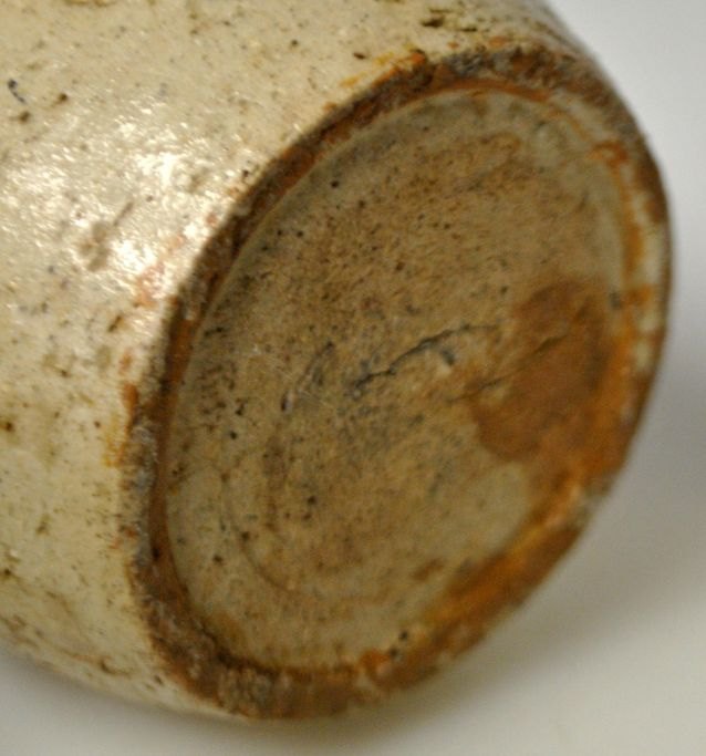 Antik kinesisk ingefær krukke i stentøj, 18./19. årh. Med blå dekoreret stribe. H.: 8 cm.