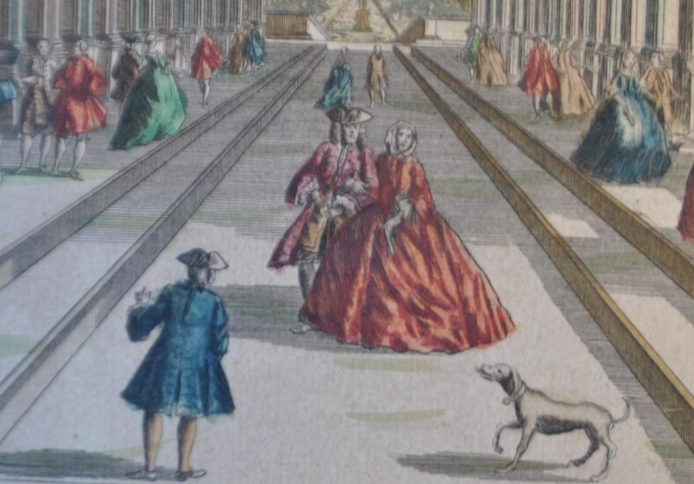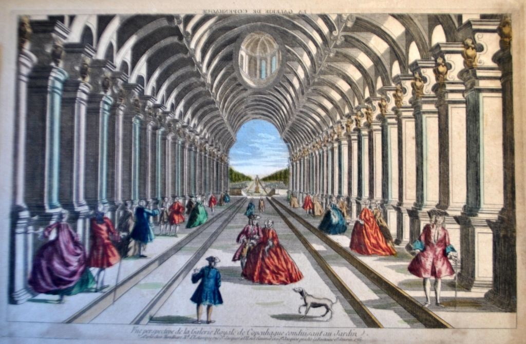 Probst, Georg Balthasar (1673 - 1747) Tyskland: Det kongelige Galleri, Danmark. Håndkoloreret kobberstik. 27 x 38 cm.