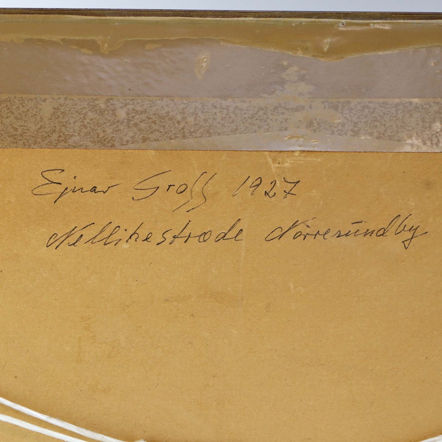 Indrammet akvarel og kultegning på papir i sortmalet træramme med bymotiv af Nellikestræde i Nørresundby fra år 1927