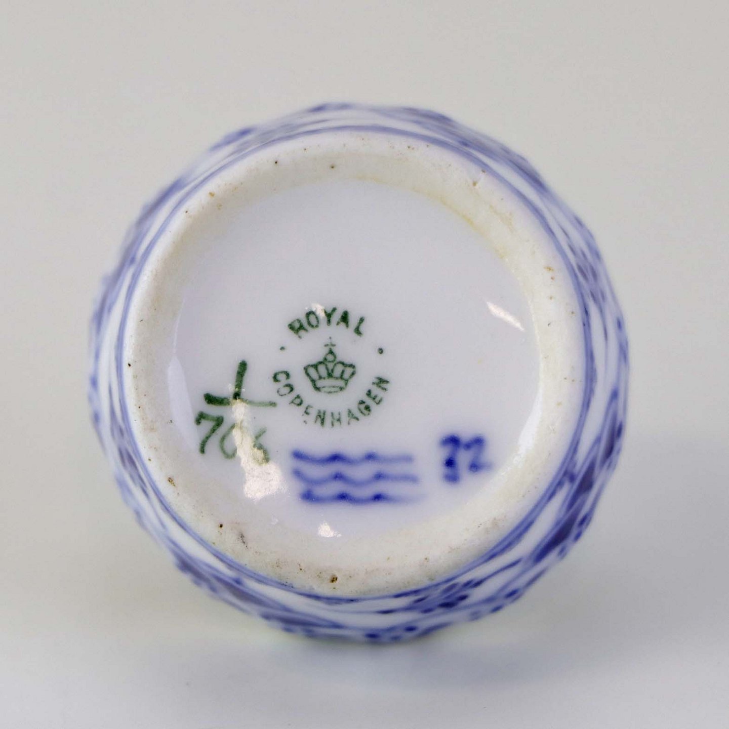 Rundt kar til salt kongeligt porcelæn fra stellet Musselmalet Halvblonde. Nr. 1/706