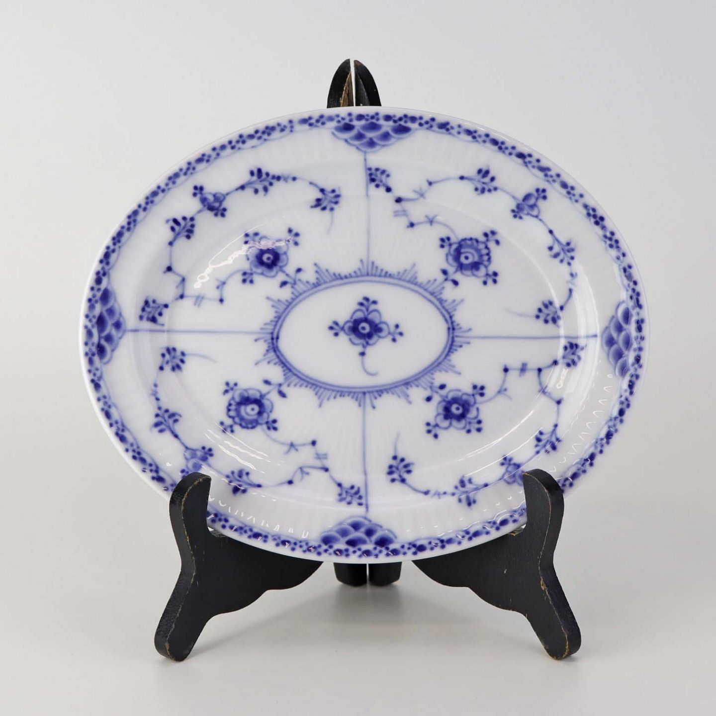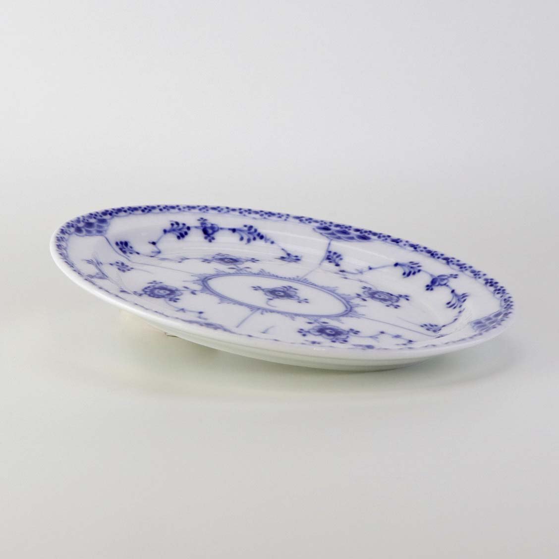 Ovalt fad i kongeligt porcelæn fra stellet Musselmalet Halvblonde. Nr. 1/750