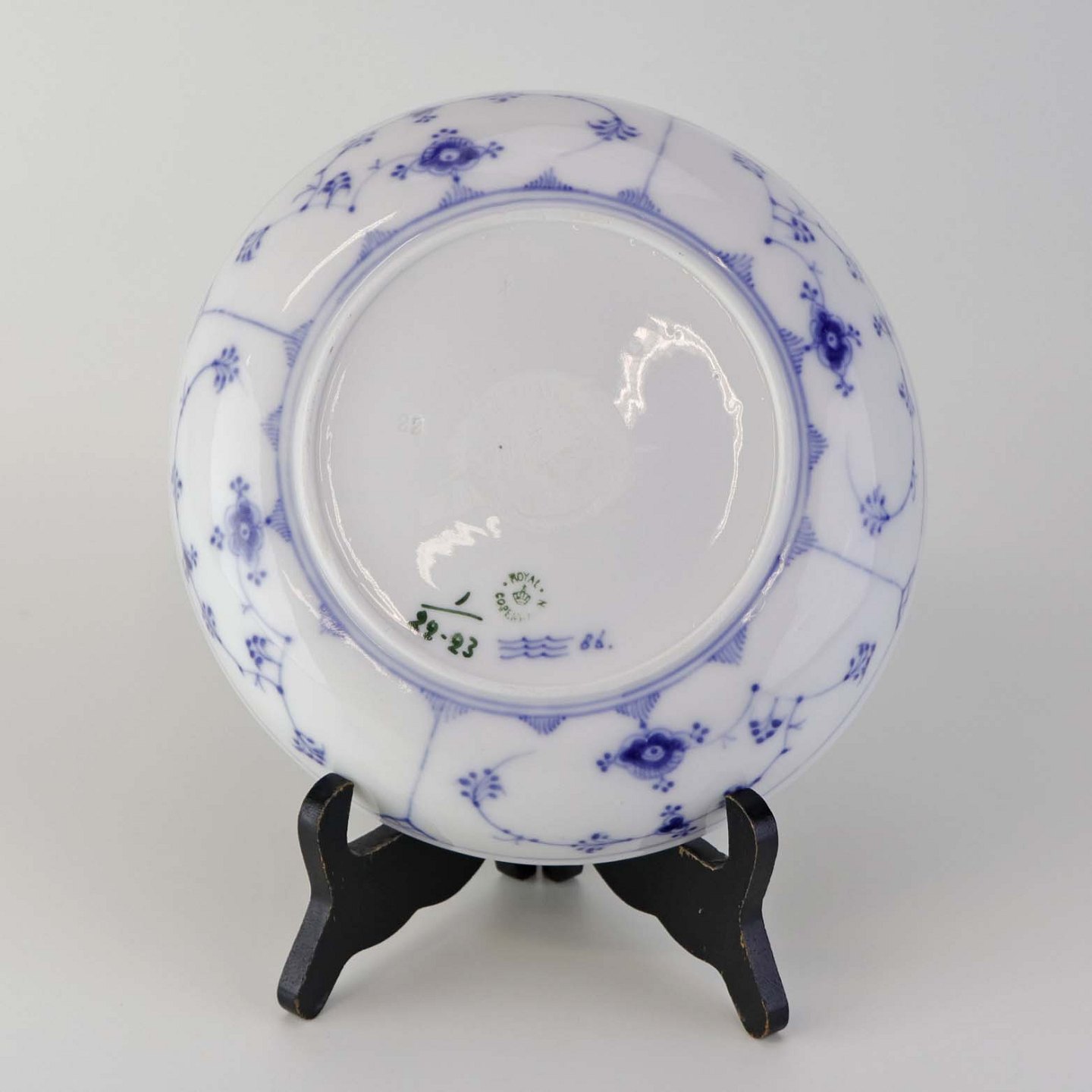 Rund skål til opsats i kongeligt porcelæn fra stellet Musselmalet riflet.
