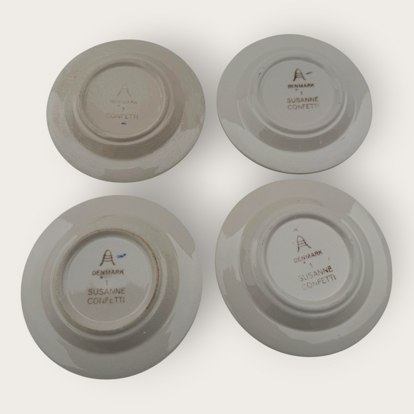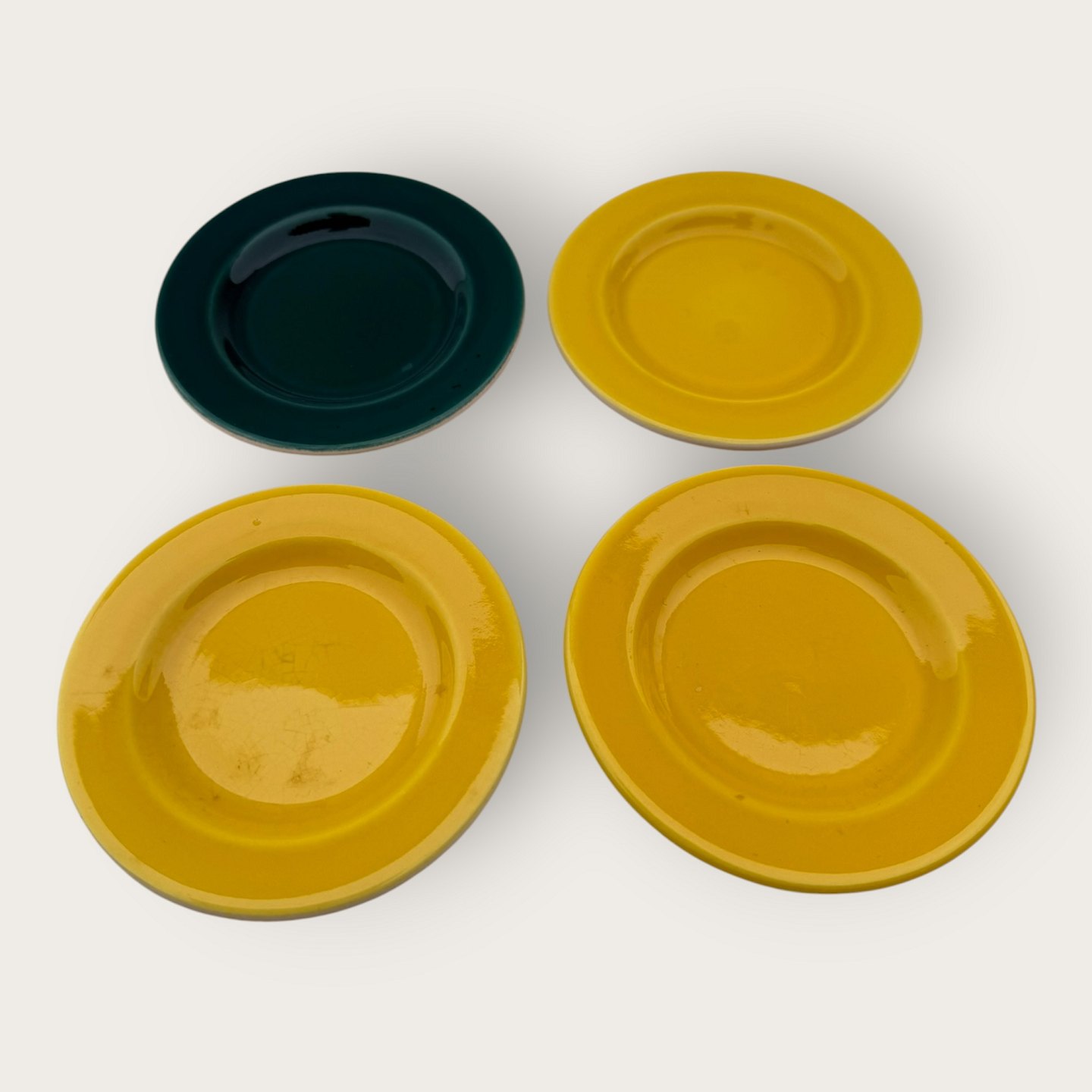 Royal Copenhagen, Aluminia, Confetti / Susanne, 4 små asietter, Gul og grøn, 9,5cm i diameter *pæn brugt stand*