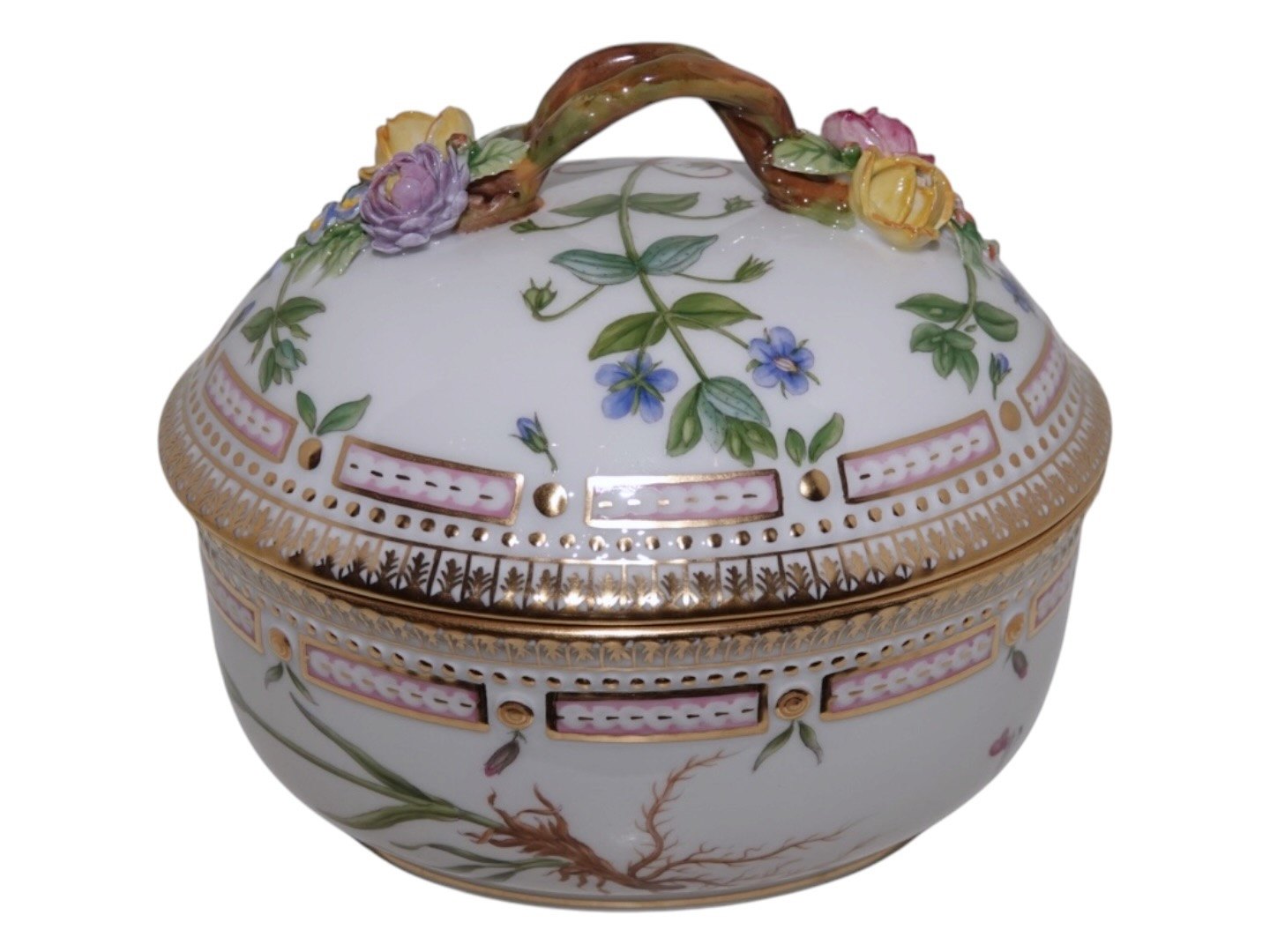 Royal Copenhagen Flora Danica, større skål med låg kaldet en sukkerdåse.