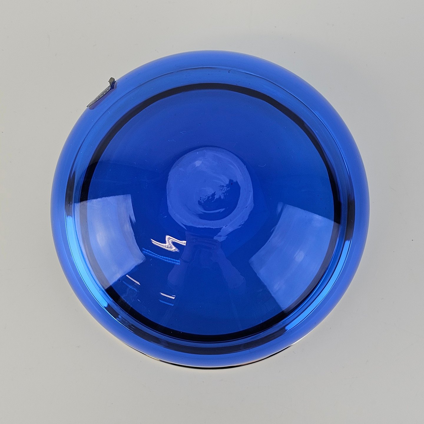 Mundblæst skål i blåt krystalglas med kant dyppet i sølv, fra serien Saturn