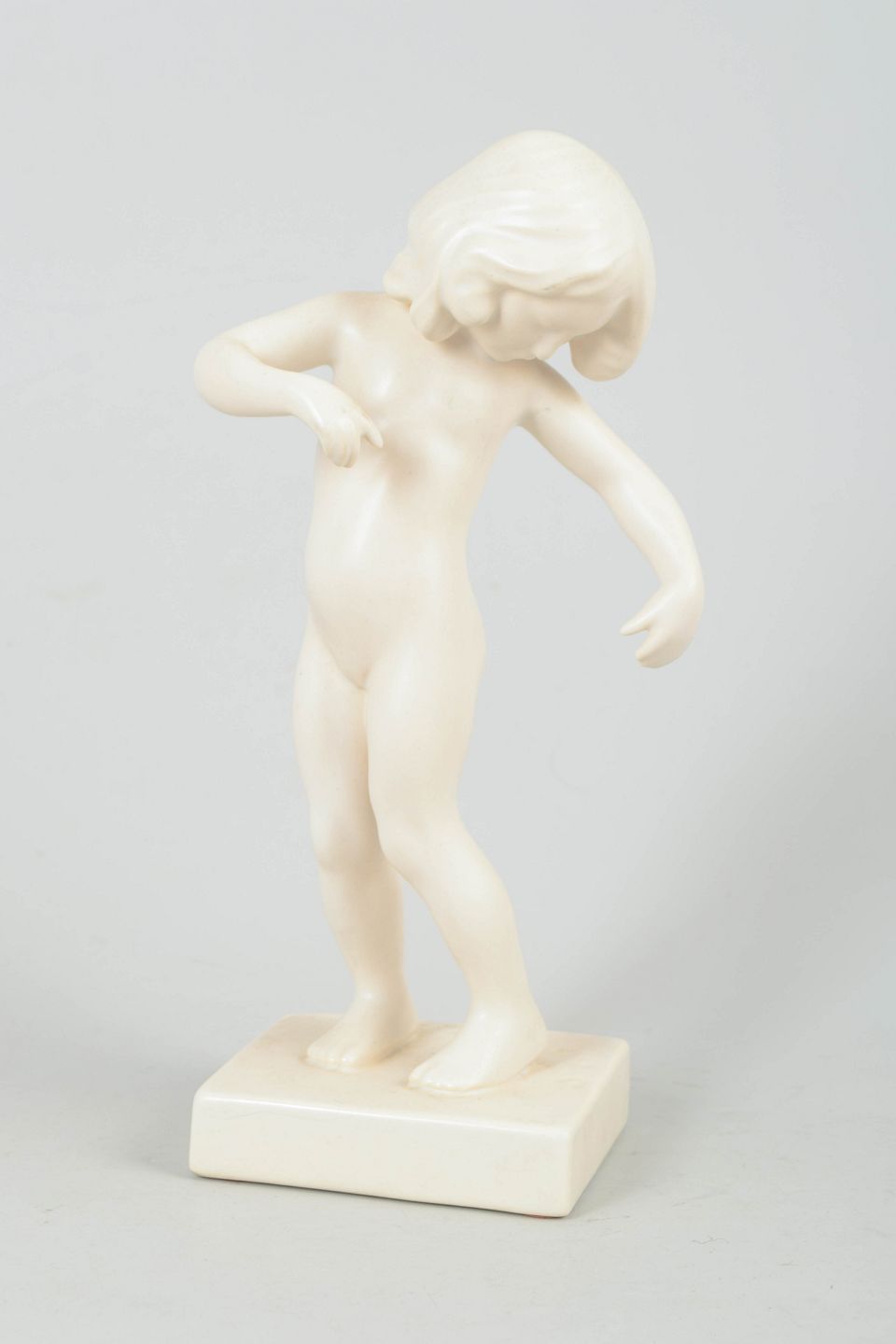 Klassisk inspireret porcelænsfigur efter antik skulptur, udført med bløde, naturalistiske former og fin modellering. Modellen er nummereret 888.