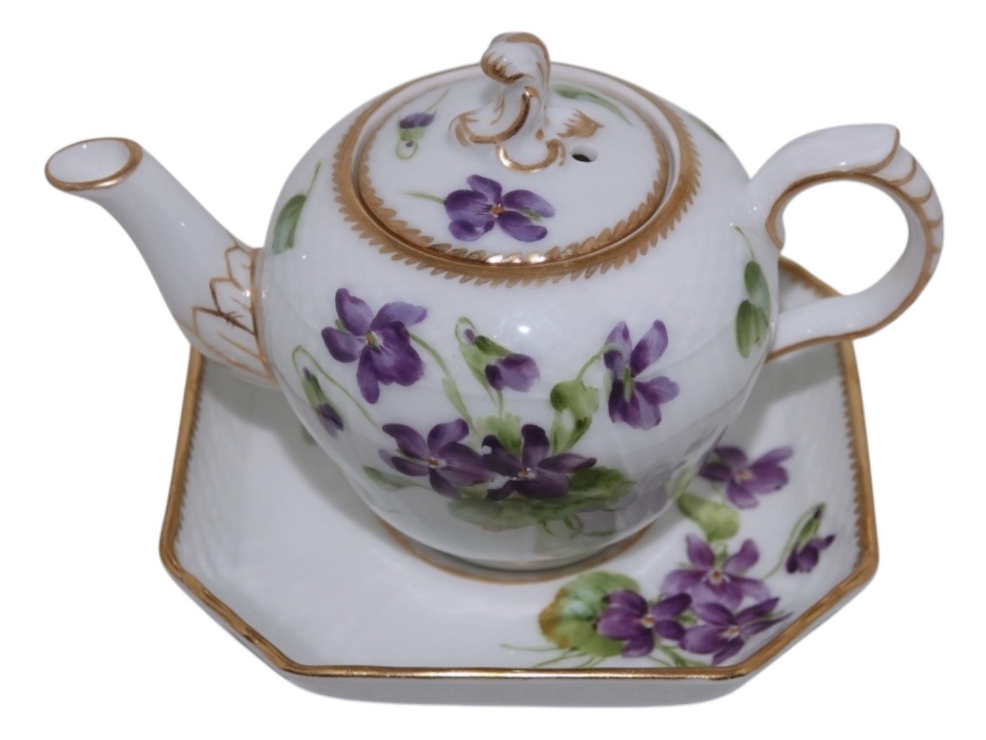 Royal Copenhagen Blå Violer med guldkant, mini mini tekande i dukkestel størrelse.