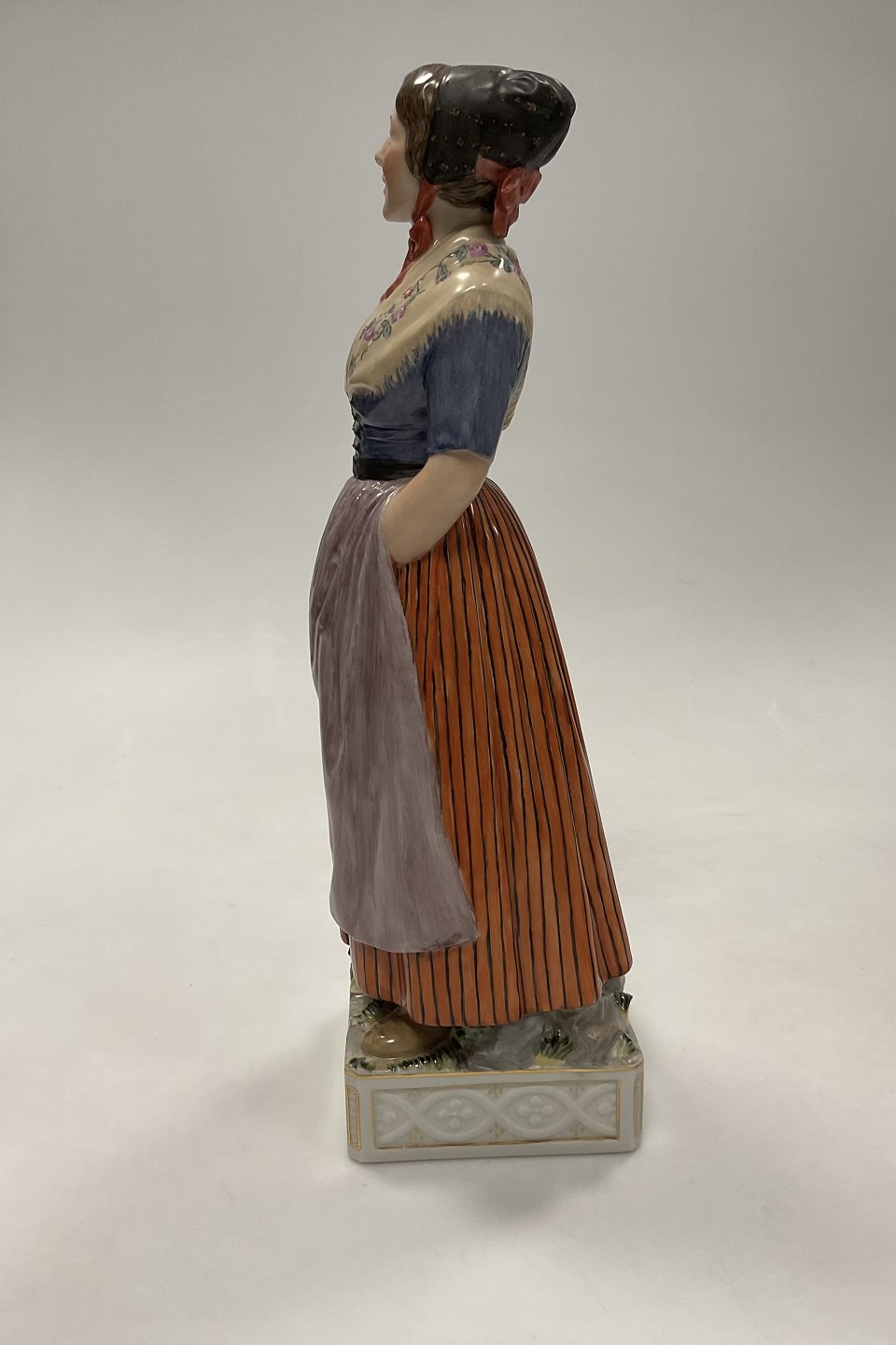 Royal Copenhagen Overglasur Figur Kvinde i Folkedragt Færøerne No. 12221. Måler 31,5cm / 12.40 inch