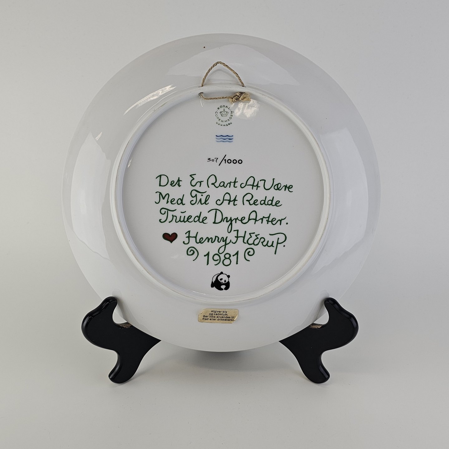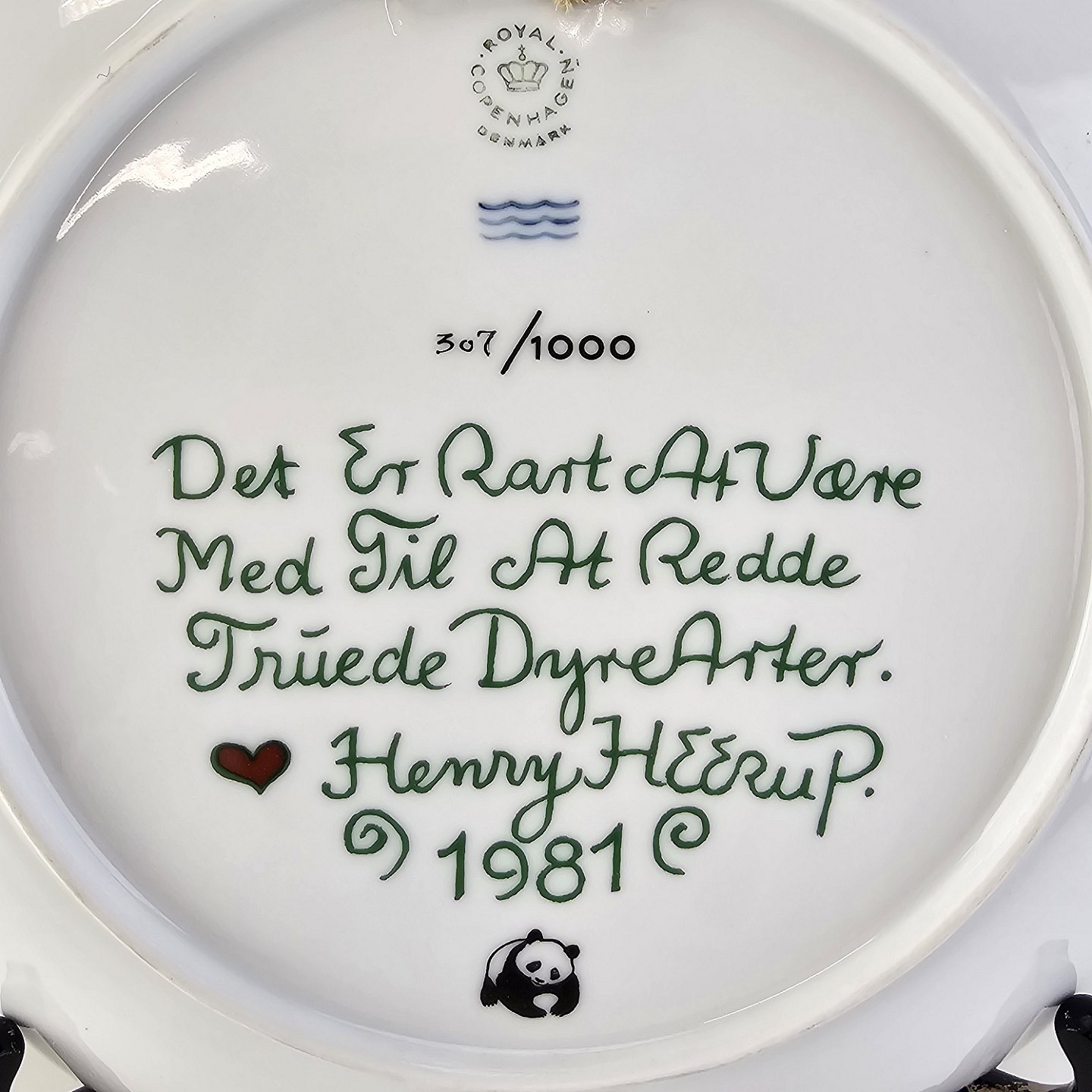 Signeret Heerup 1981 og dedikeret til Verdensnaturfondens arbejde med truede dyrearter
