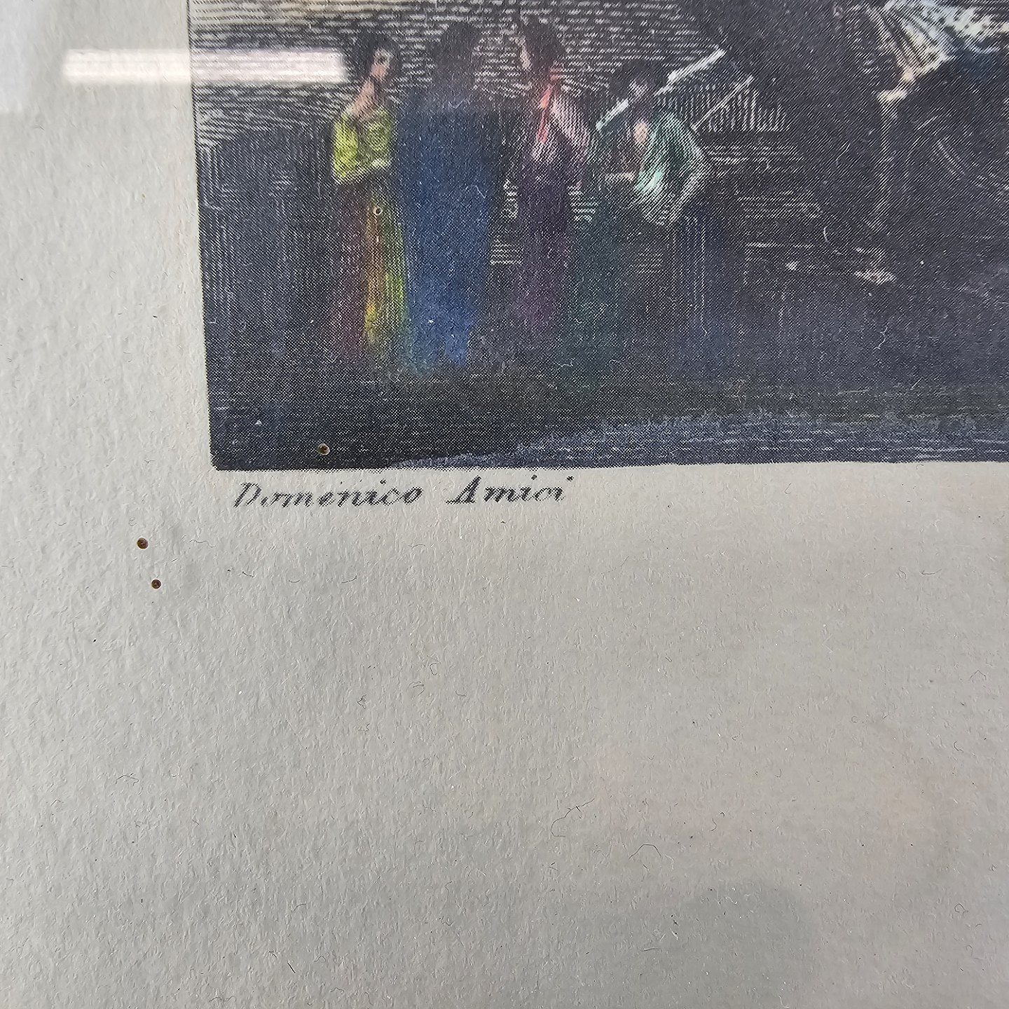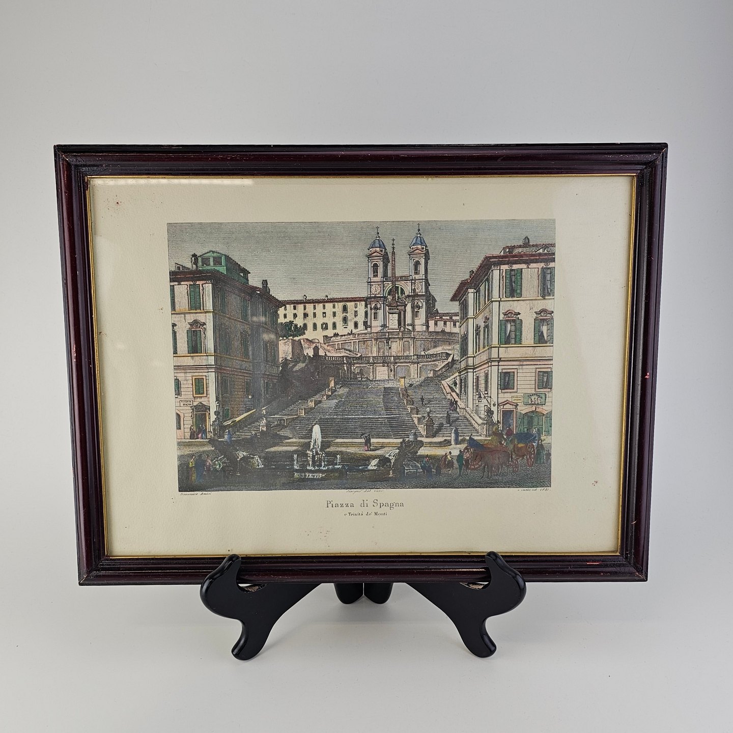 Bogtryk på papir med motiv af den spanske trappe i Rom, monteret i sort ramme