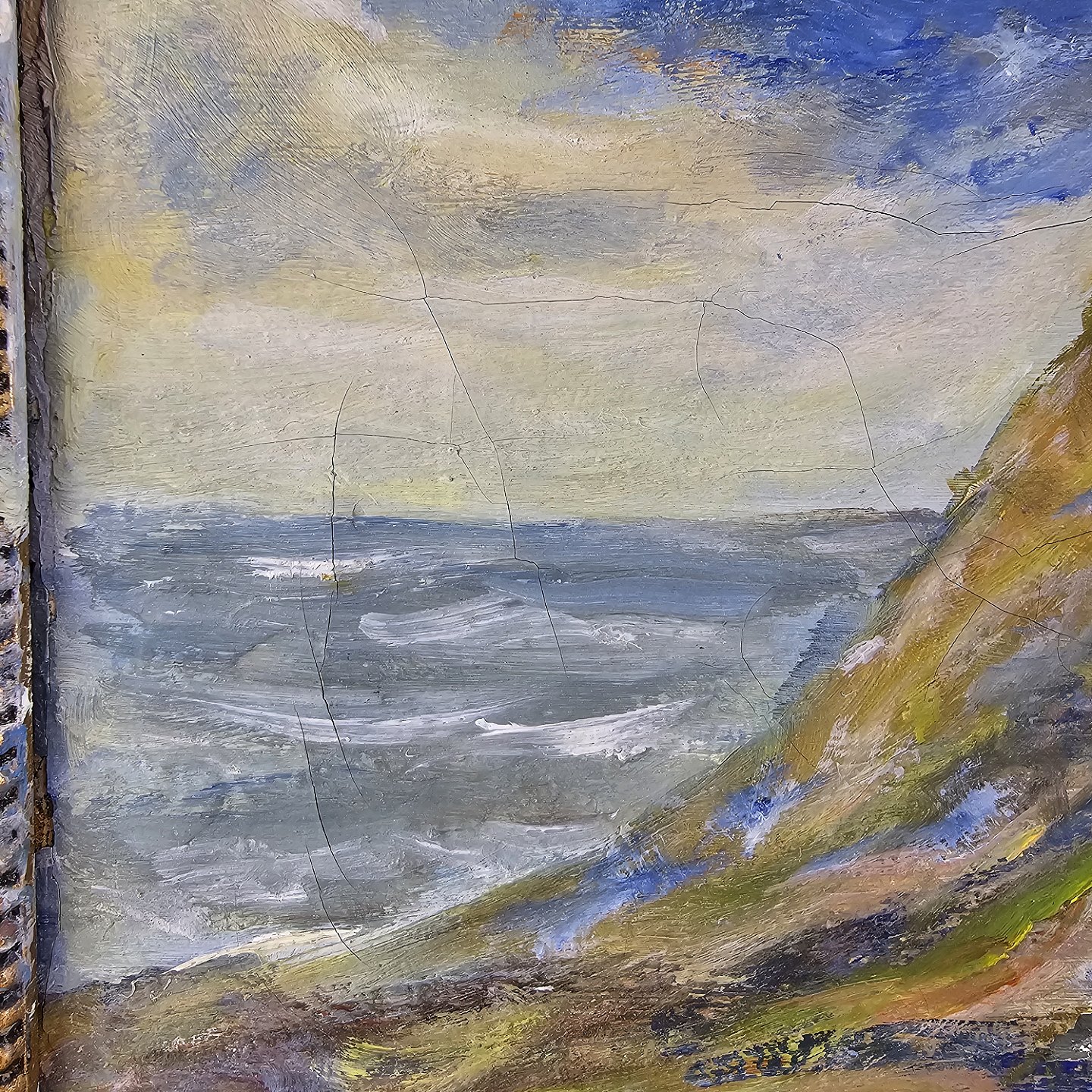 Fremstår med brugsspor og maling rester på rammen, samt krakeleringer i malingen