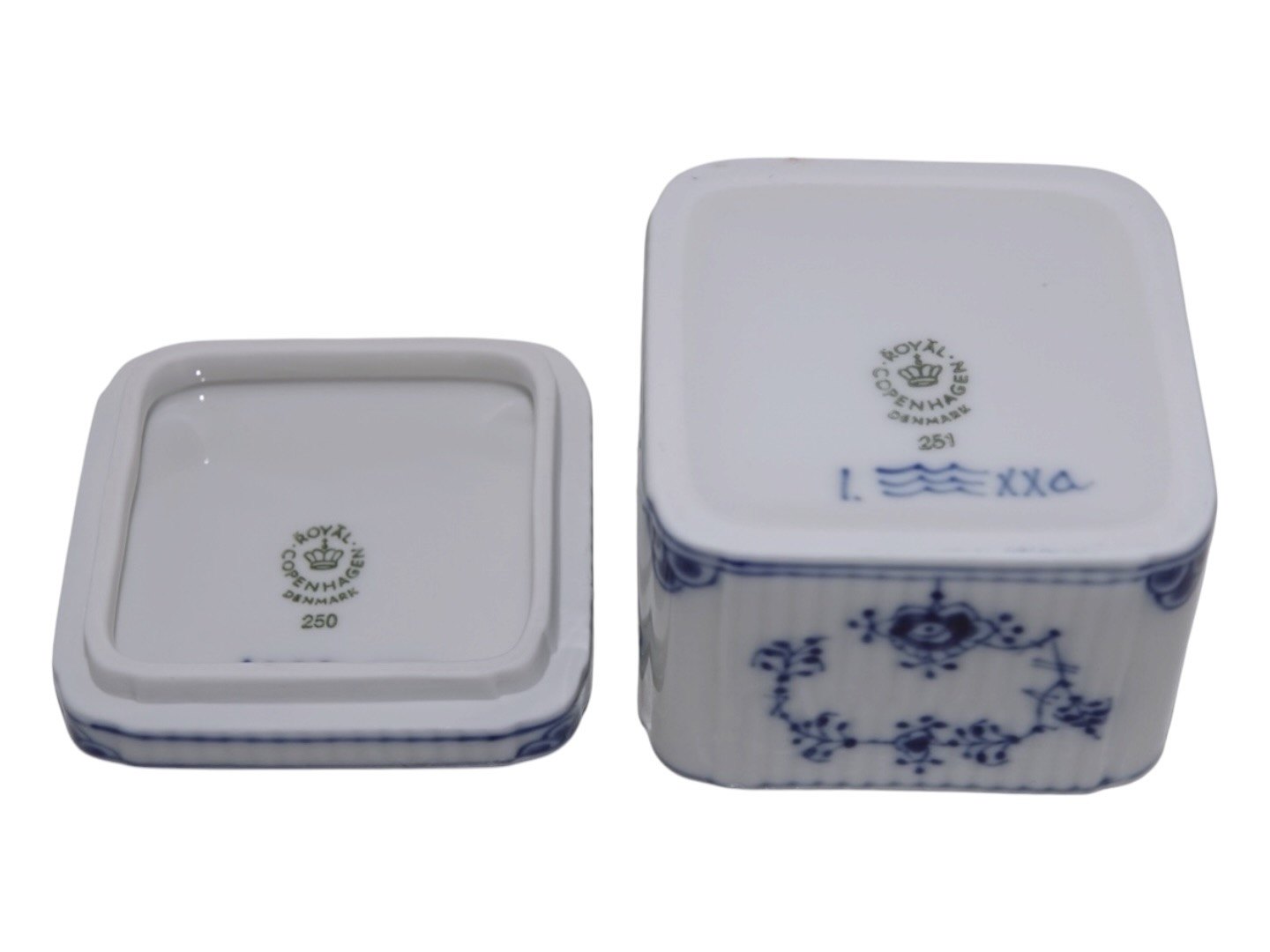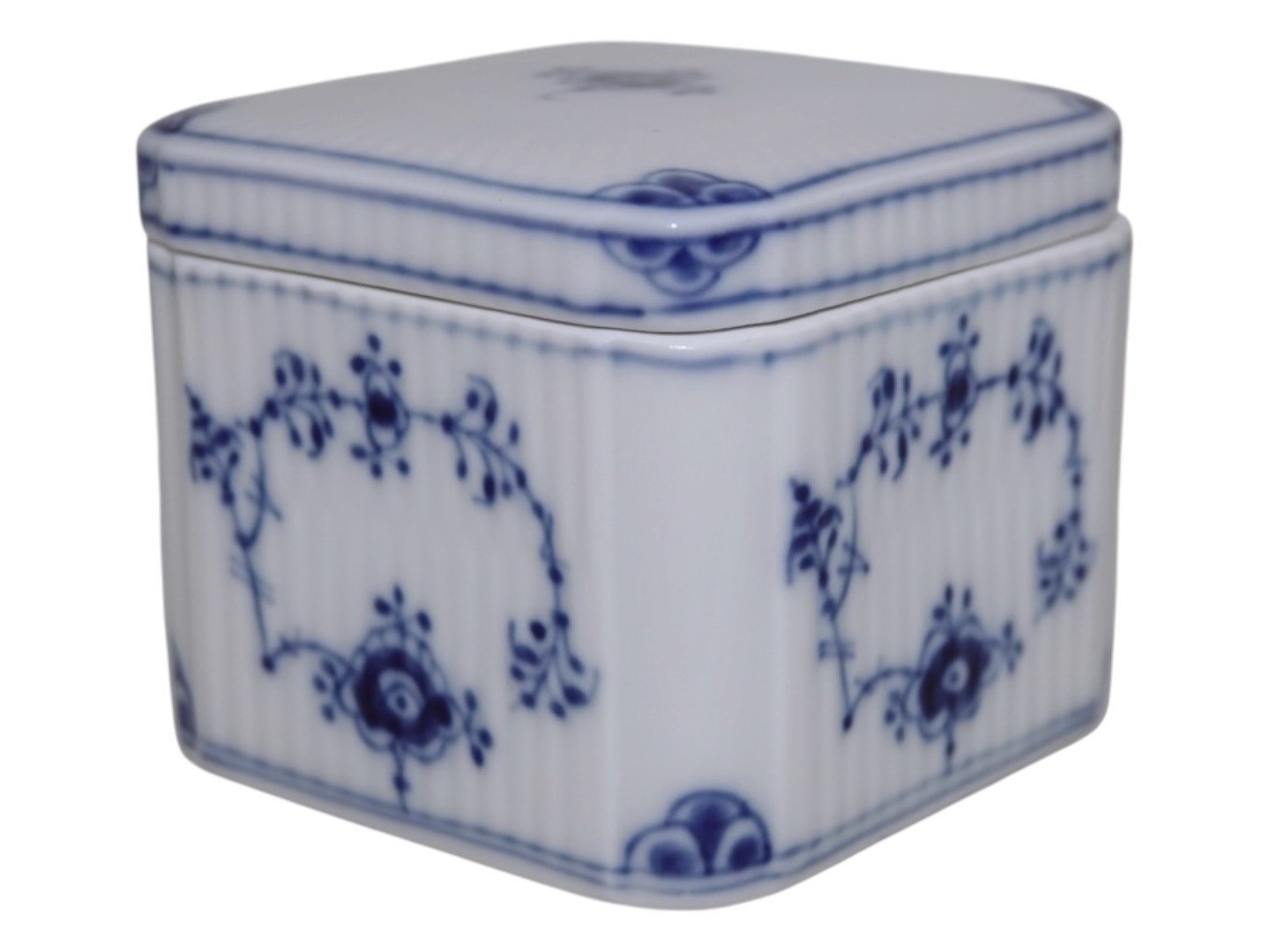 Royal Copenhagen Musselmalet Riflet, lille firkantet bonboniere.