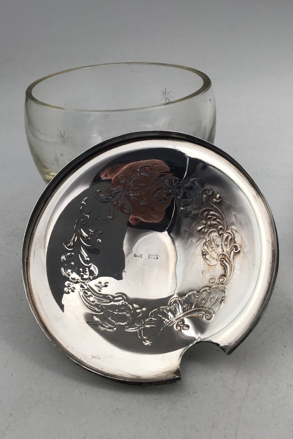 Svend Toxværd Sølvlåg på Glaskrukke