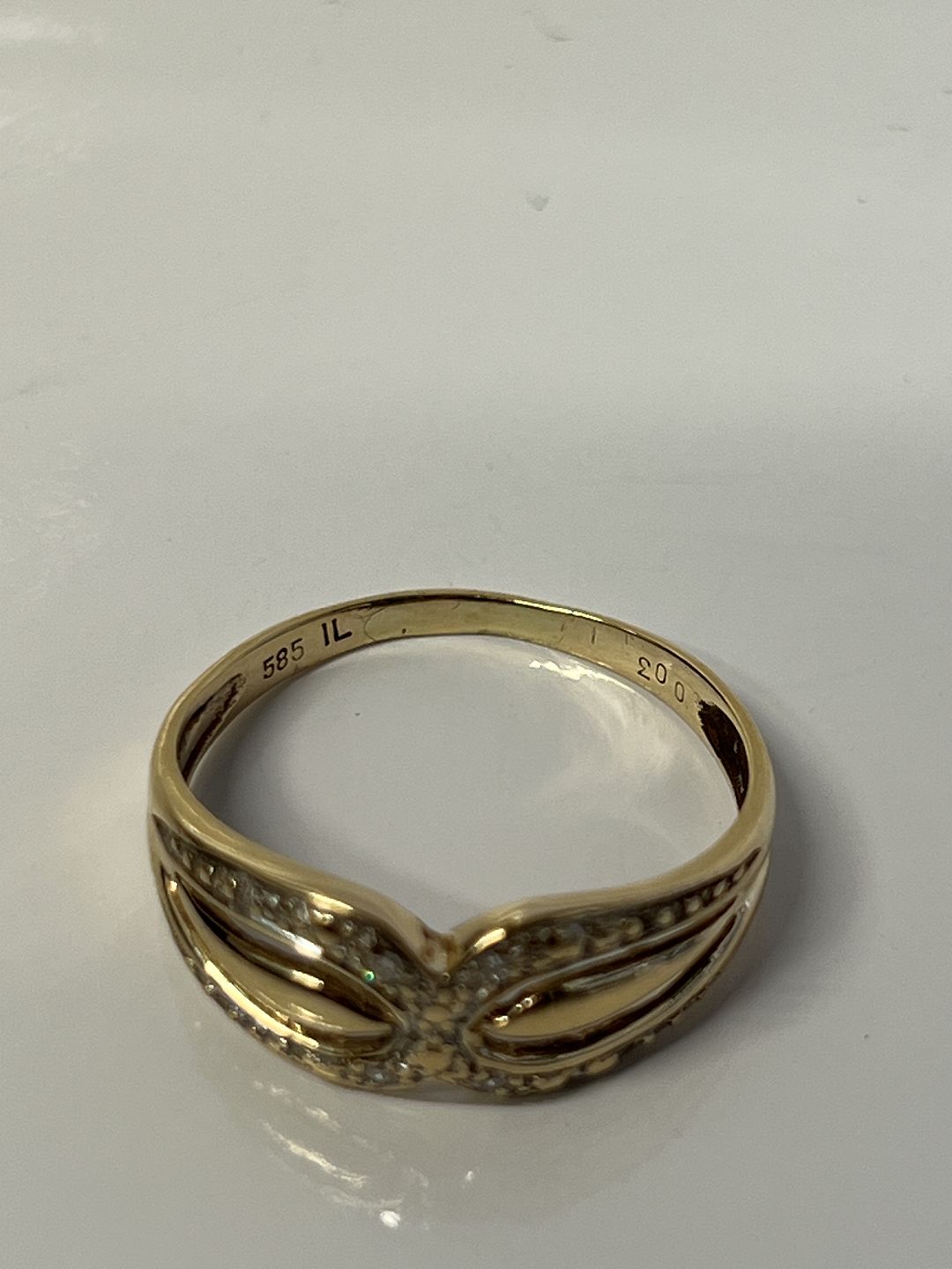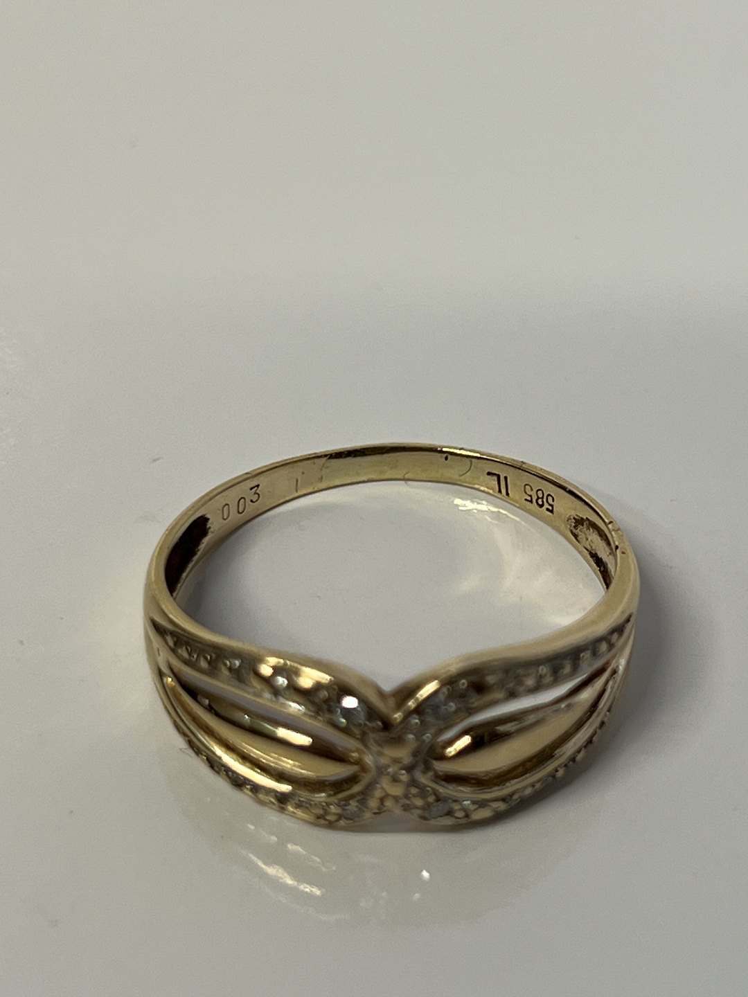 14 karat guld Damering, med indlagte Diamanter.