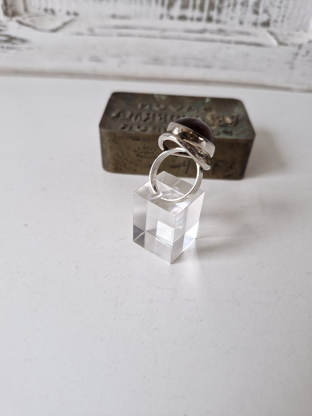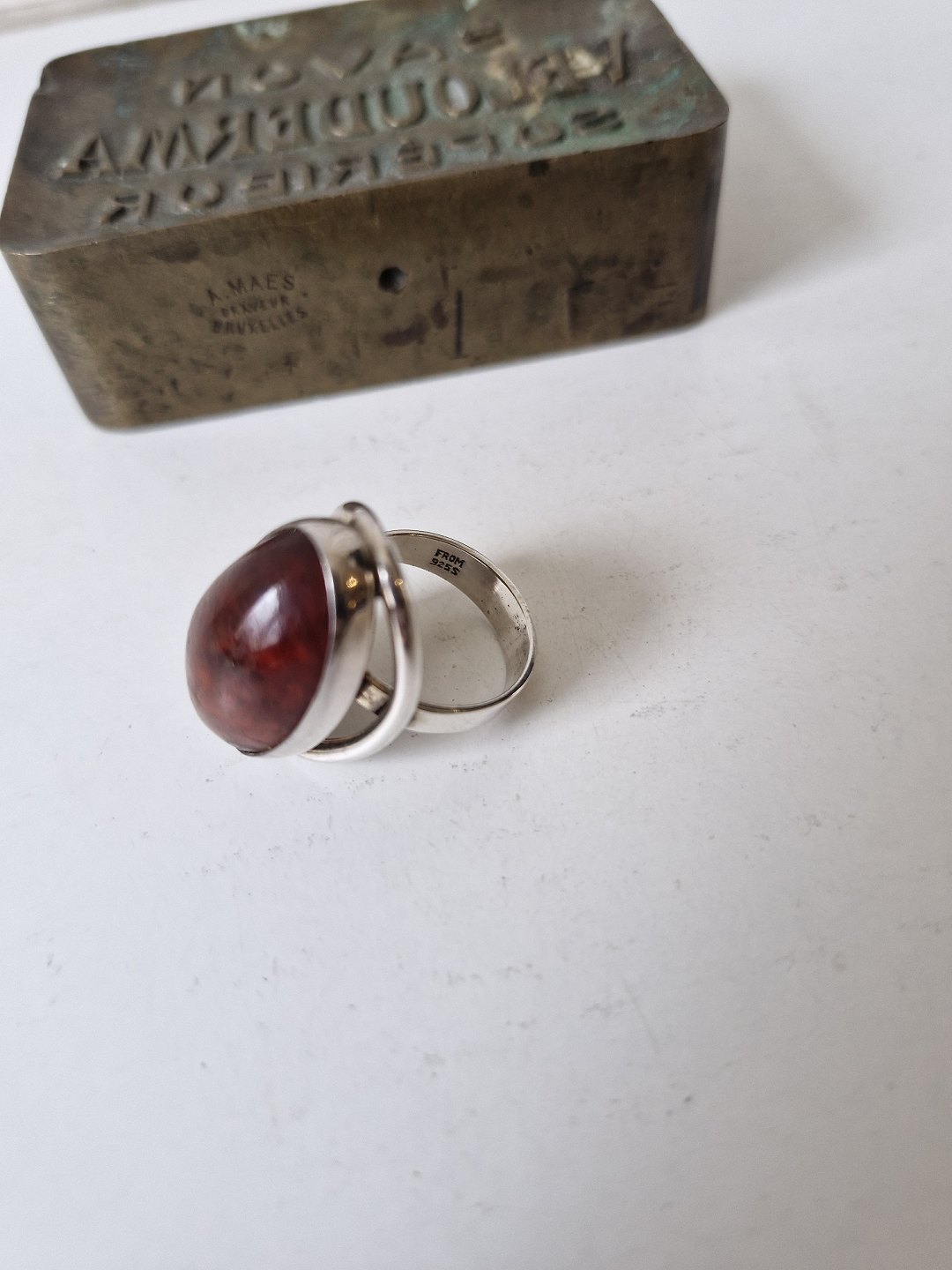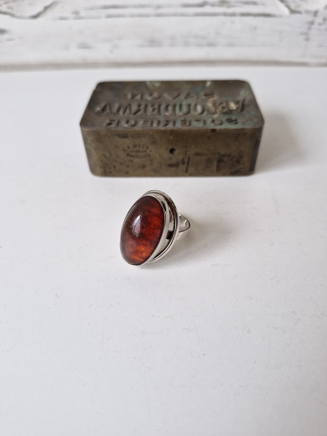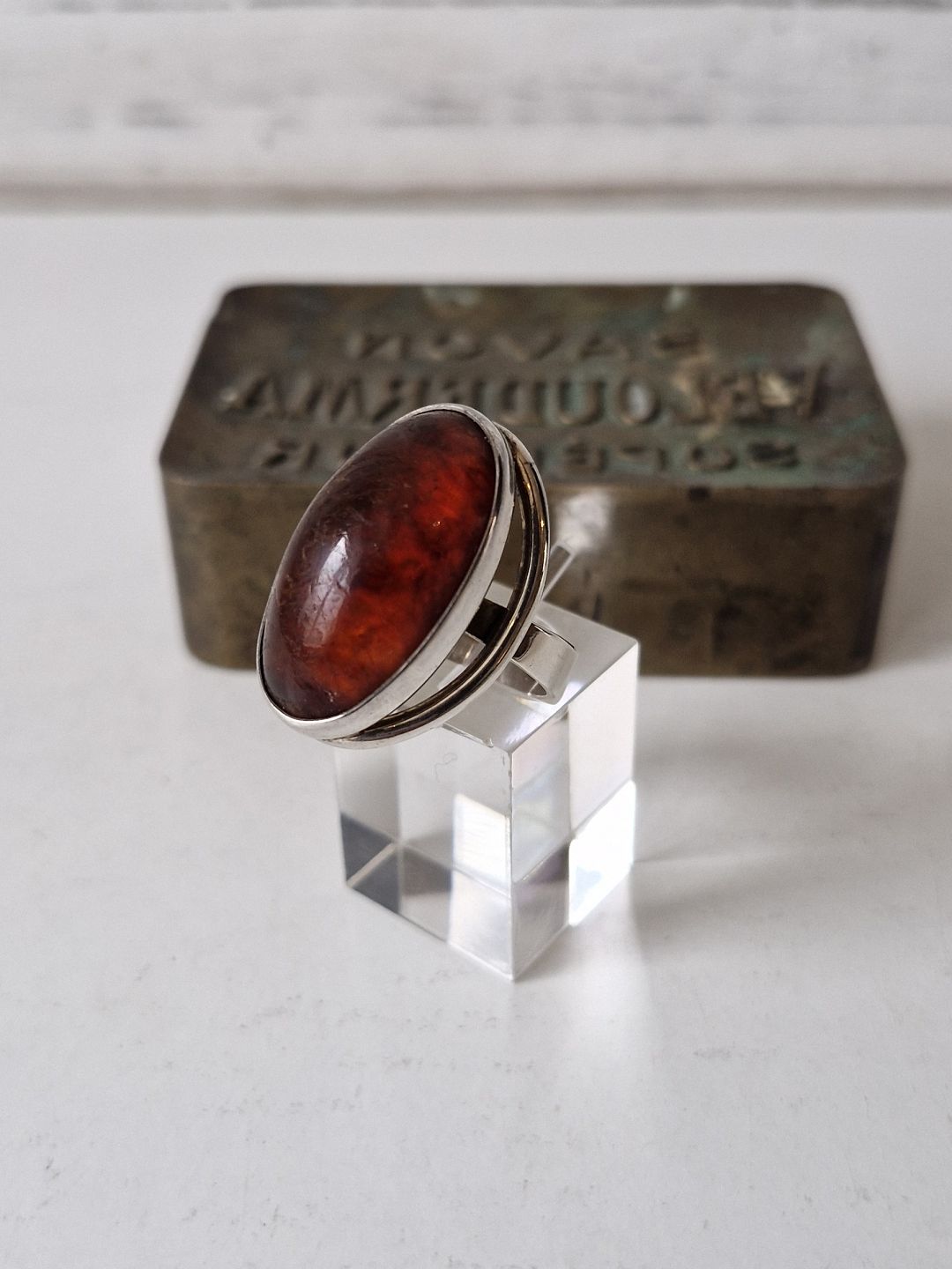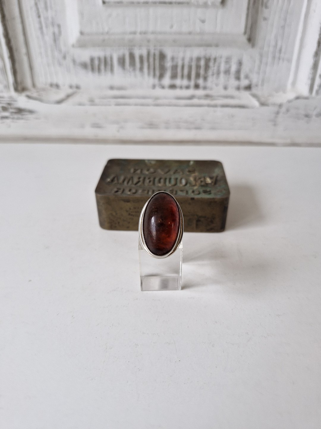 N.E.From vintage ring i sterlingsølv med oval ravperle