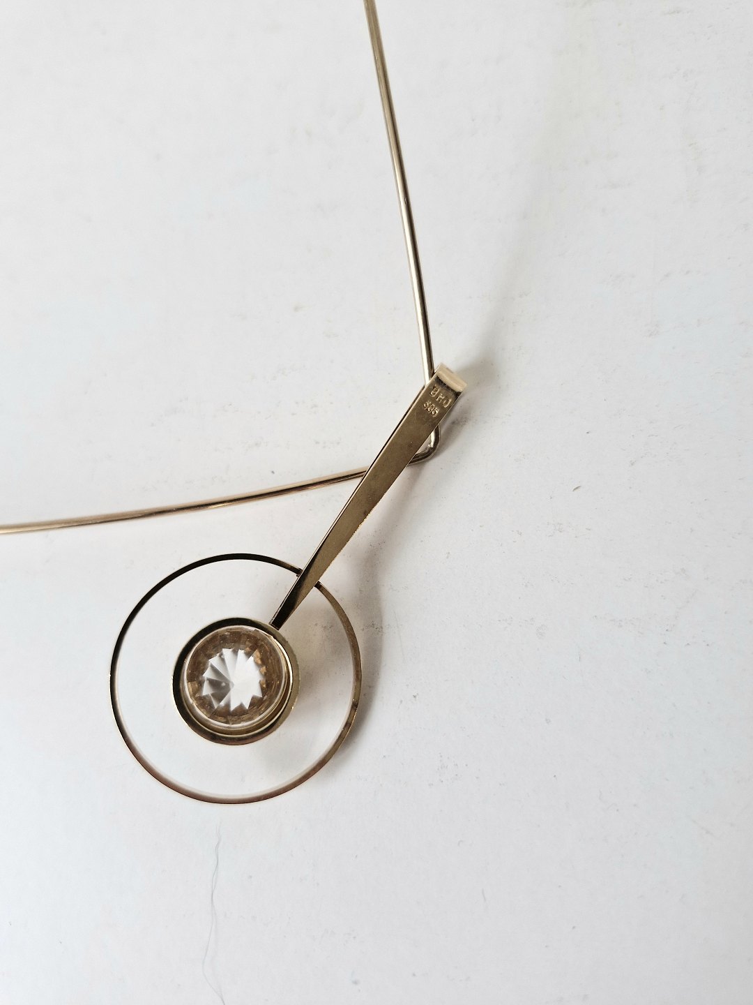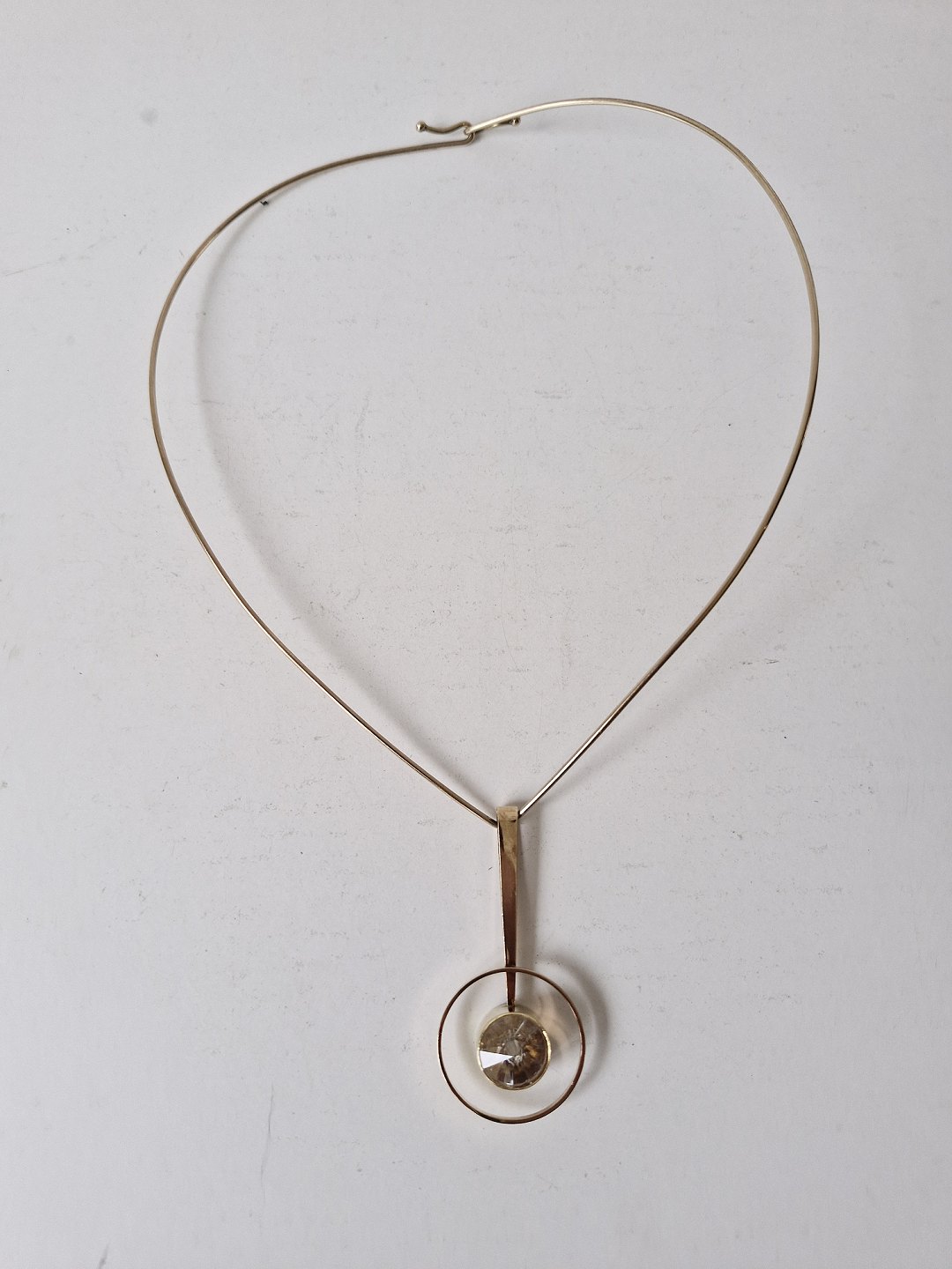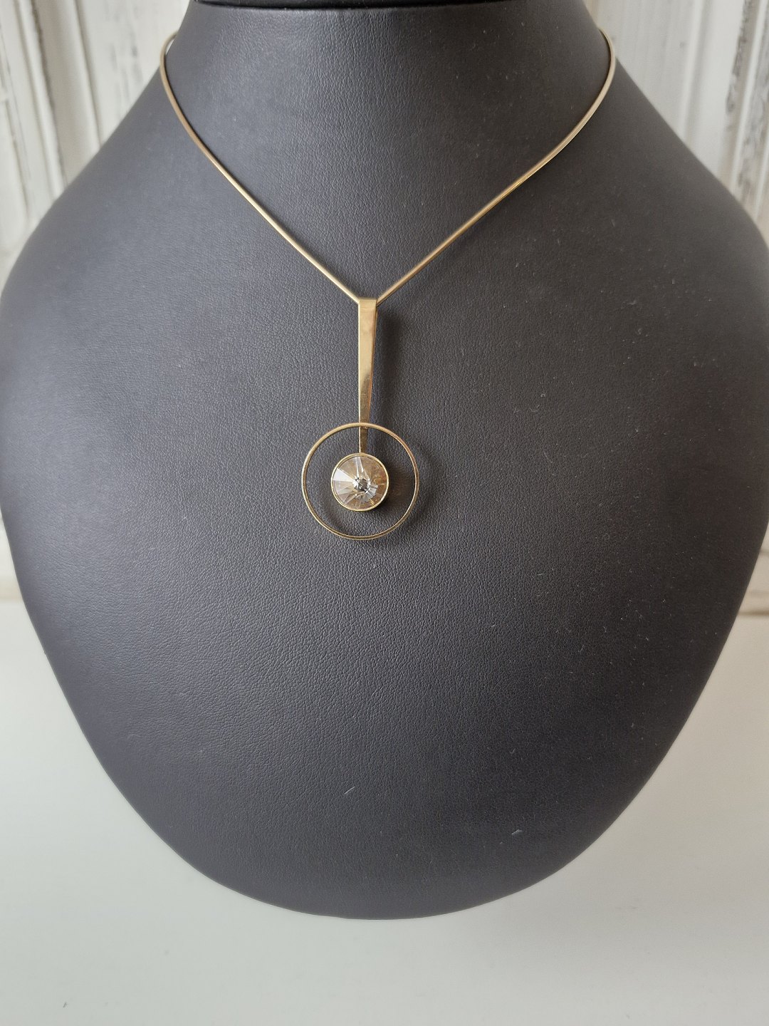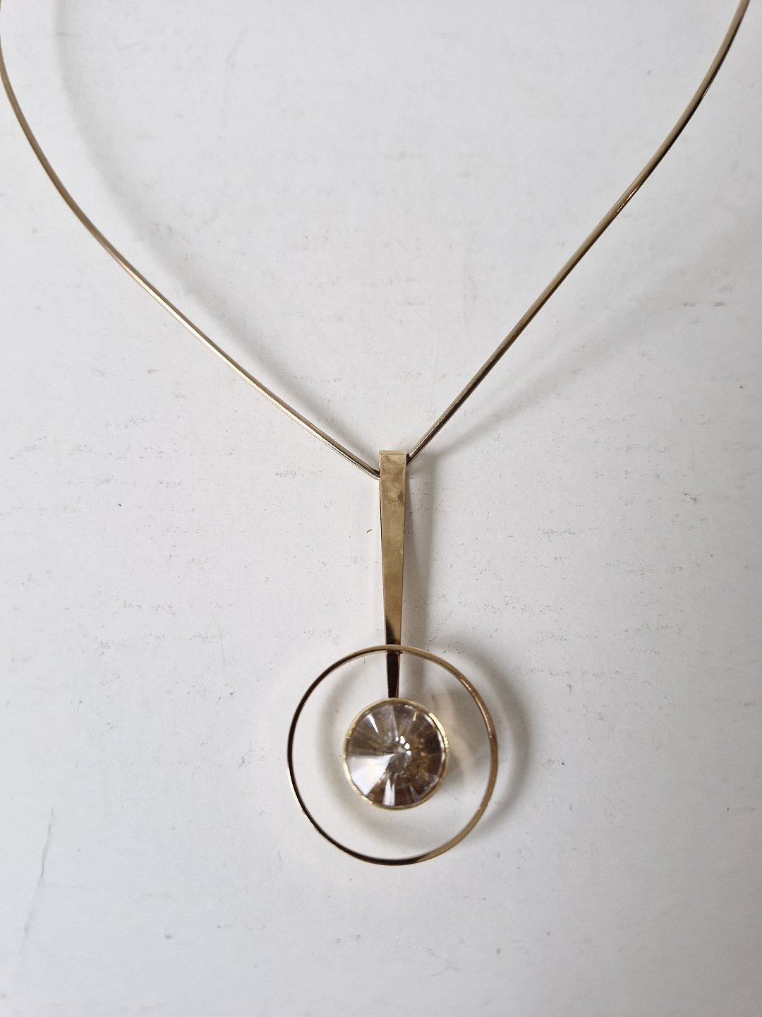Bræmer Jensen halsring med vedhæng i 14 kt guld prydet med bjergkrystal