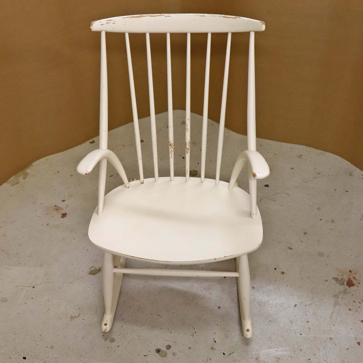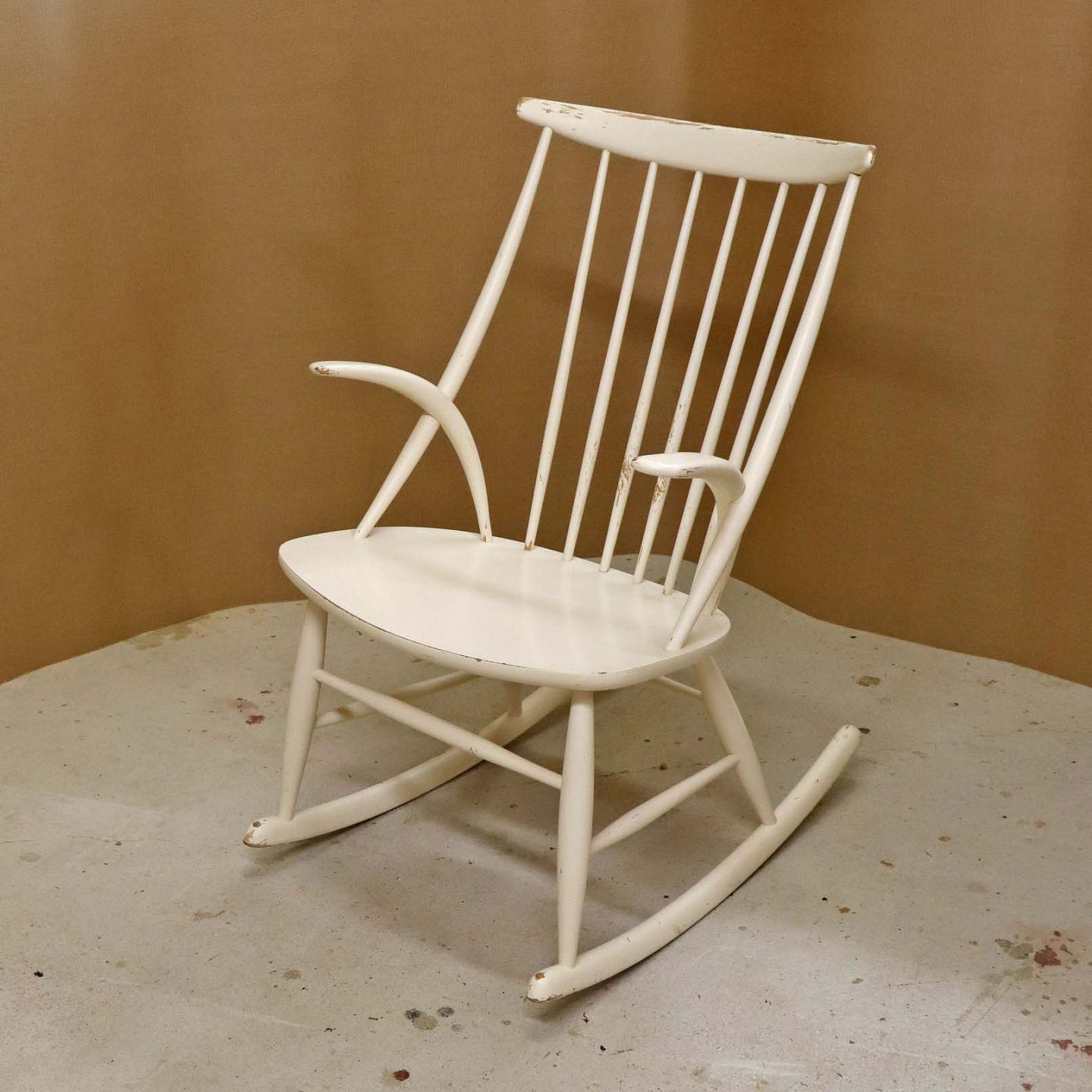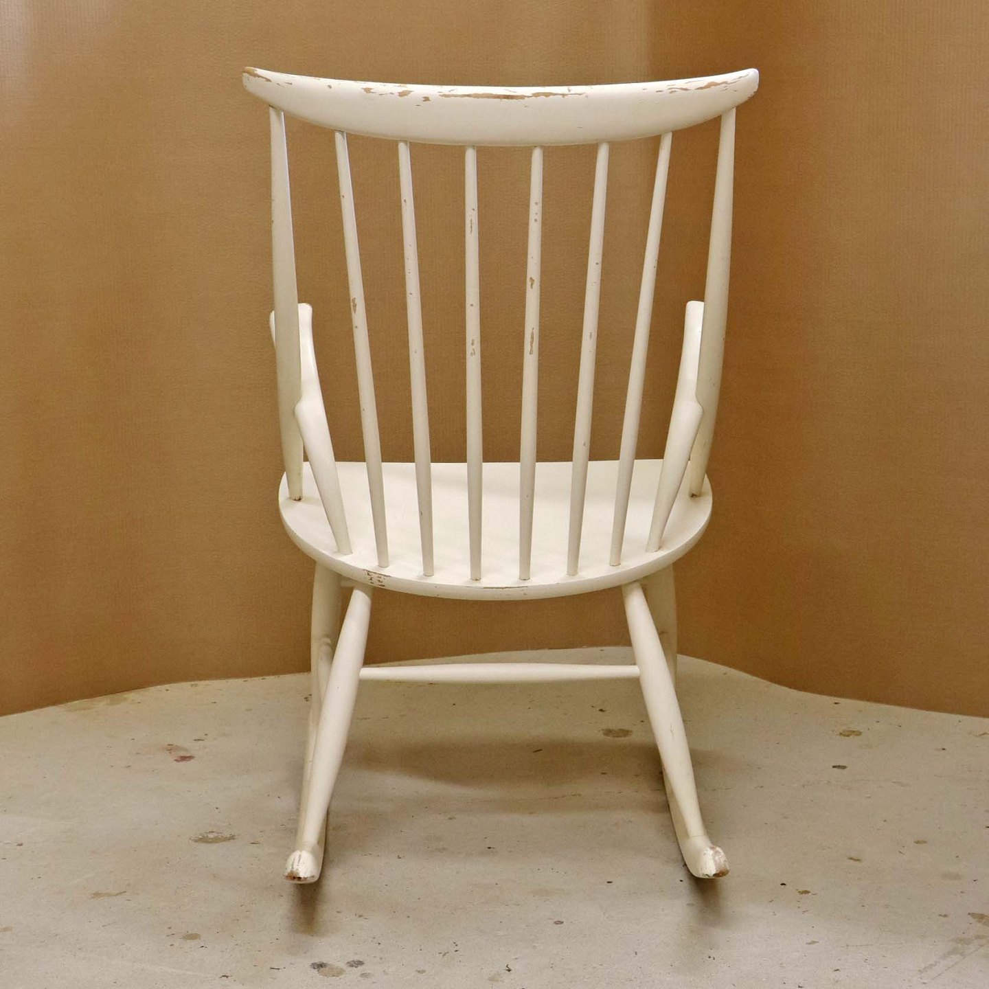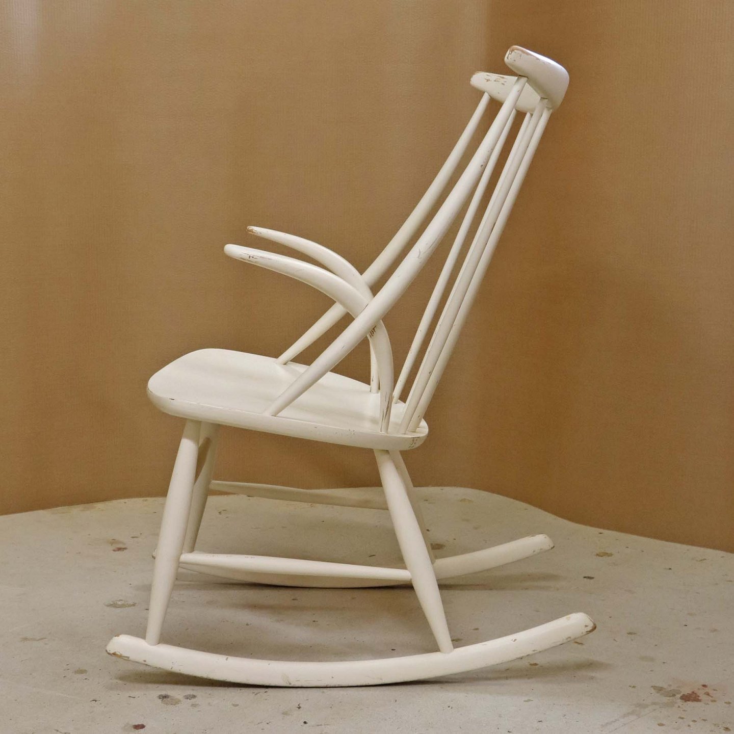 Tremme gyngestol formgivet år 1958 i hvidlakeret træ. Model IW3