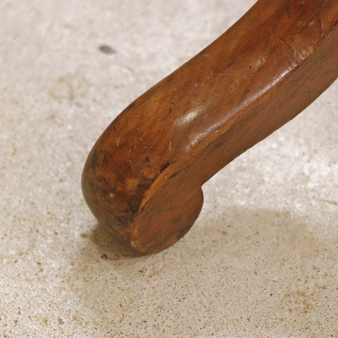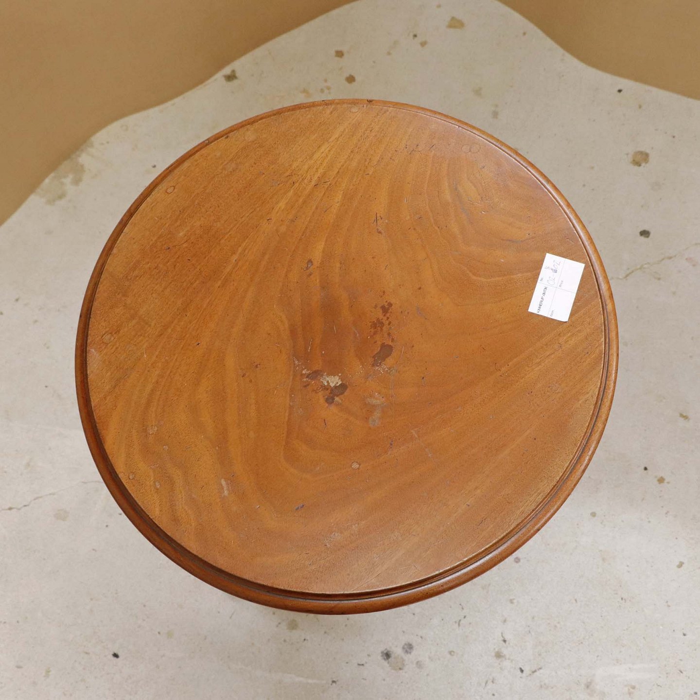 Et ældre serveringsbord på tre fødder i lakeret maghoni med tre etager. Opsatsdelen kan slås sammen til et bord.